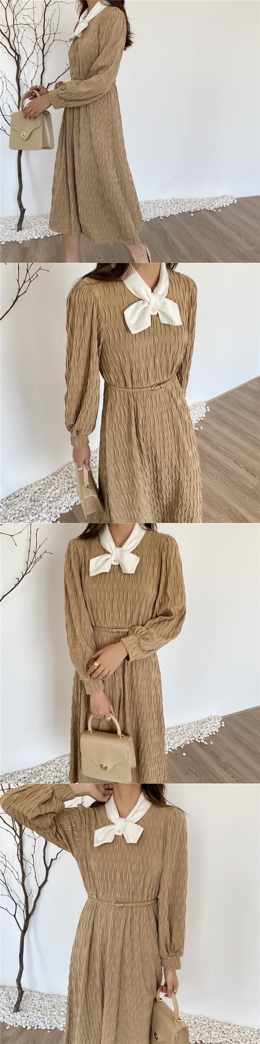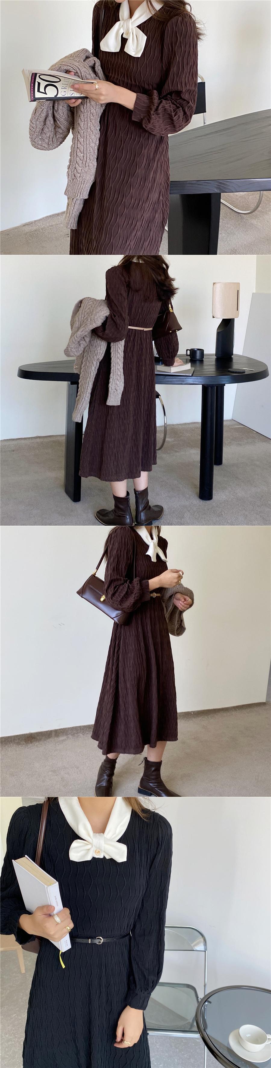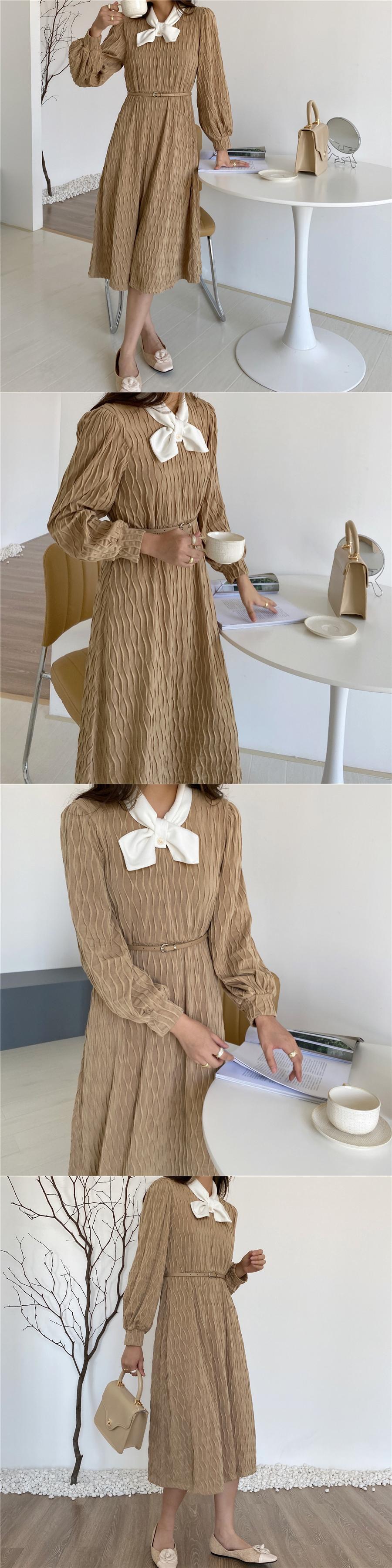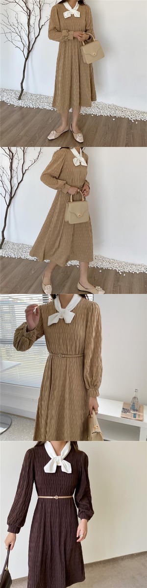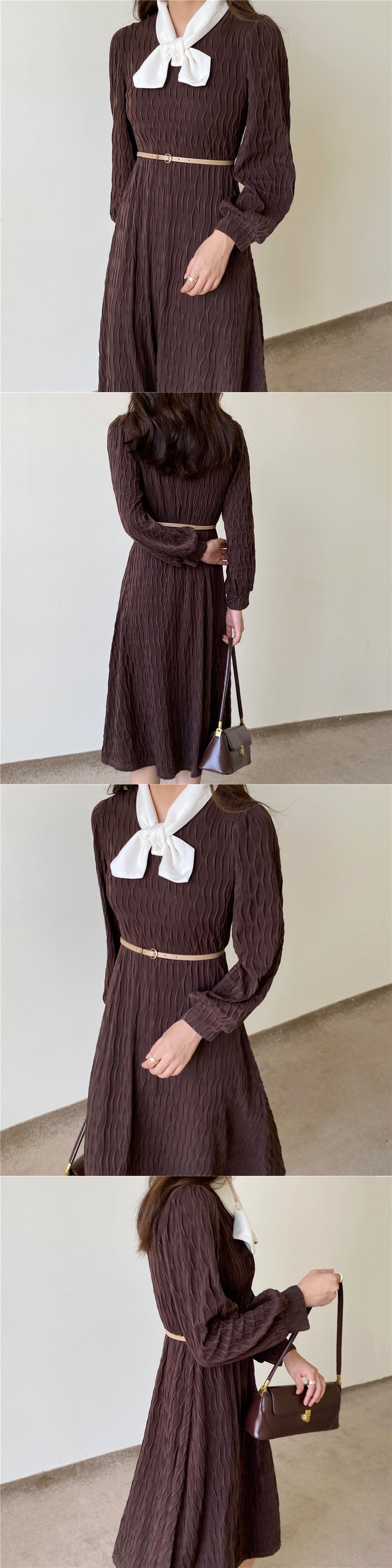 スタンダードリボンプルオーバー ドレス ルーズオータムウィンターウェストスカート レトロ 秋物 冬物 フラワーデザイン 韓国婦人61159090242
