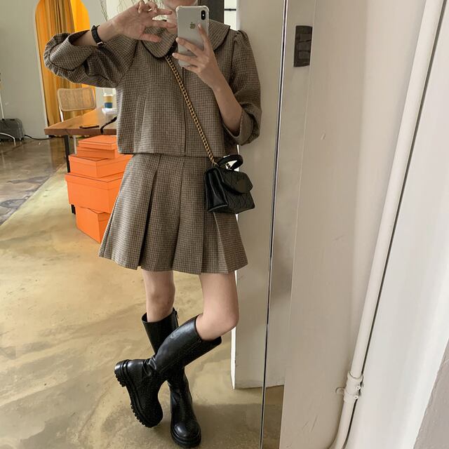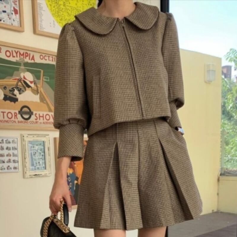スプリングスタンダードオータムスタイル格子柄 レトロ 春物 秋物 韓国婦人9296696204