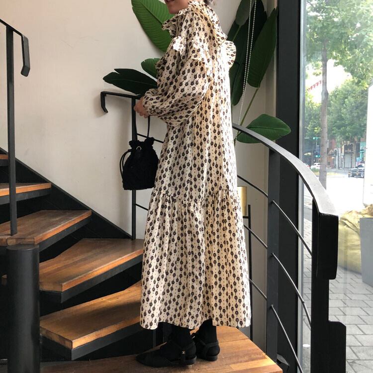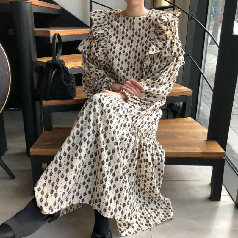 オータムウィンタースタンダードスタイル薄手ルーズドレス レディース ランタンスリーブ レトロ 秋物 冬物 韓国婦人6602965692