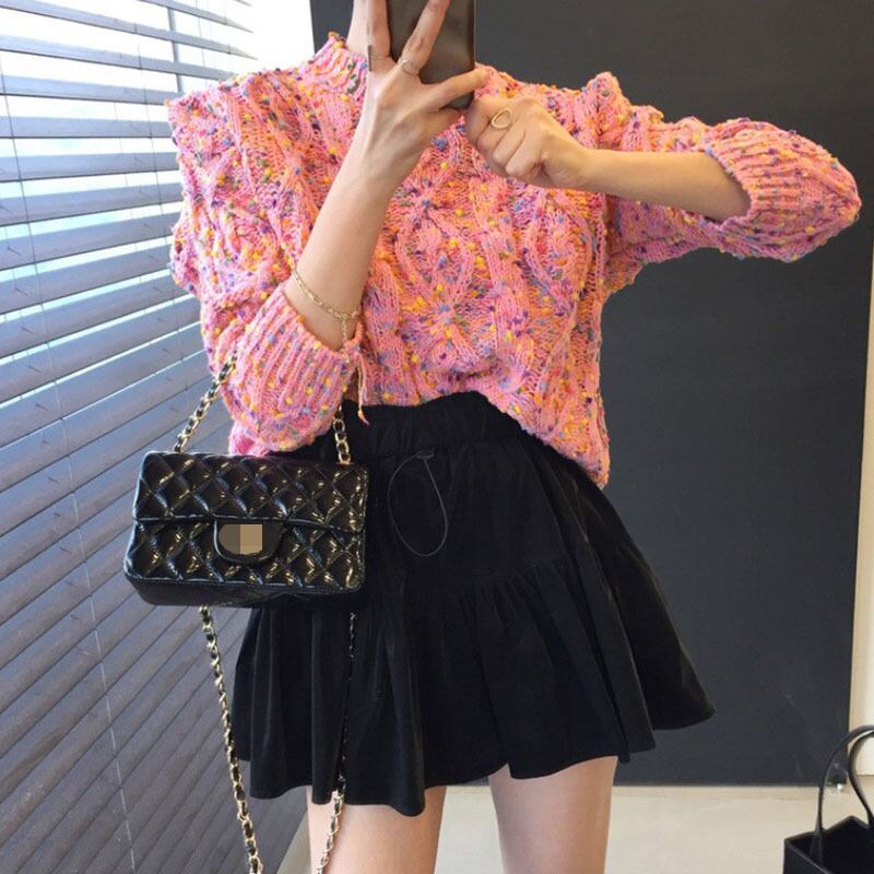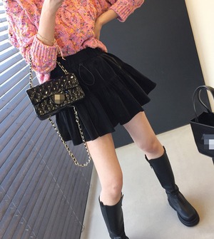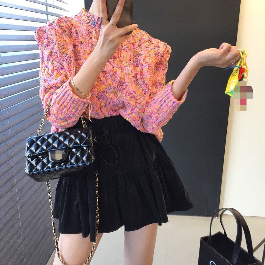 オータムウィンタースタイルセーター ギャザースカート レディース レッド 大人ガーリー スウィート キュート カジュアル ふわふわ 秋物 冬物 韓国婦人16964497396