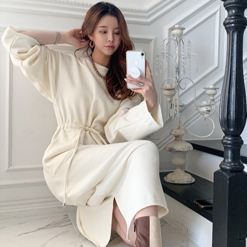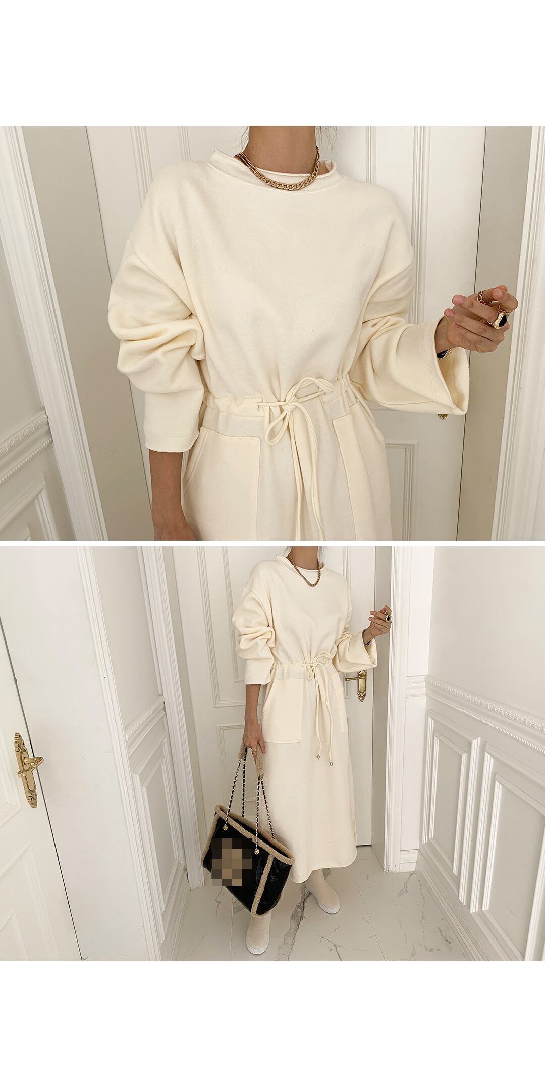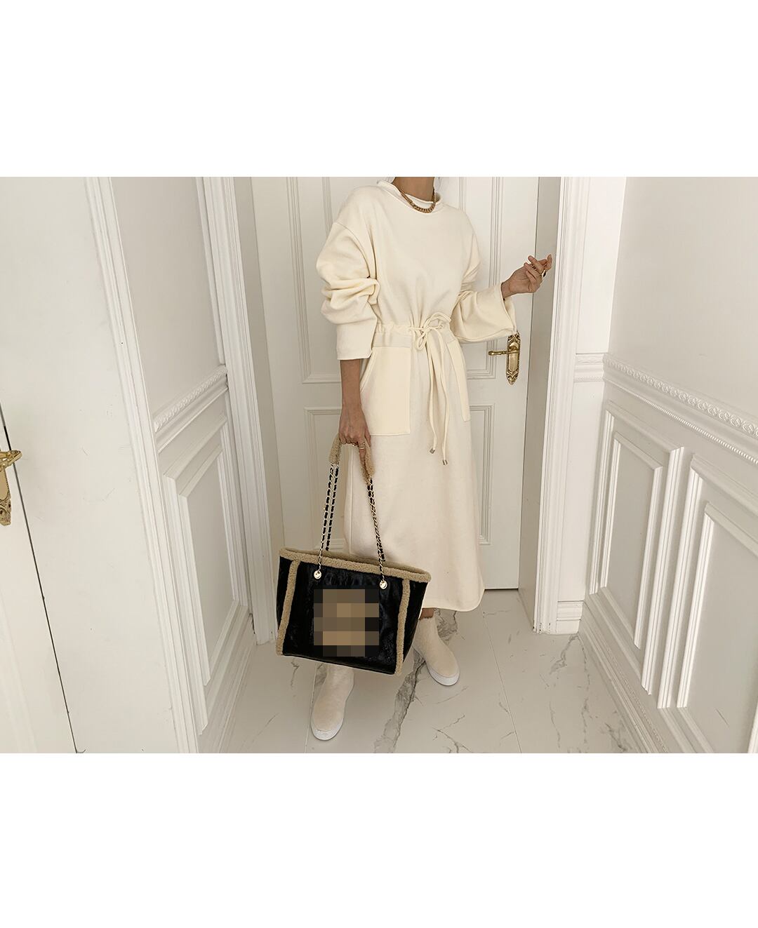 ラウンドネックルーズウェストダブルポケットドレス Oネック 韓国婦人30147285511