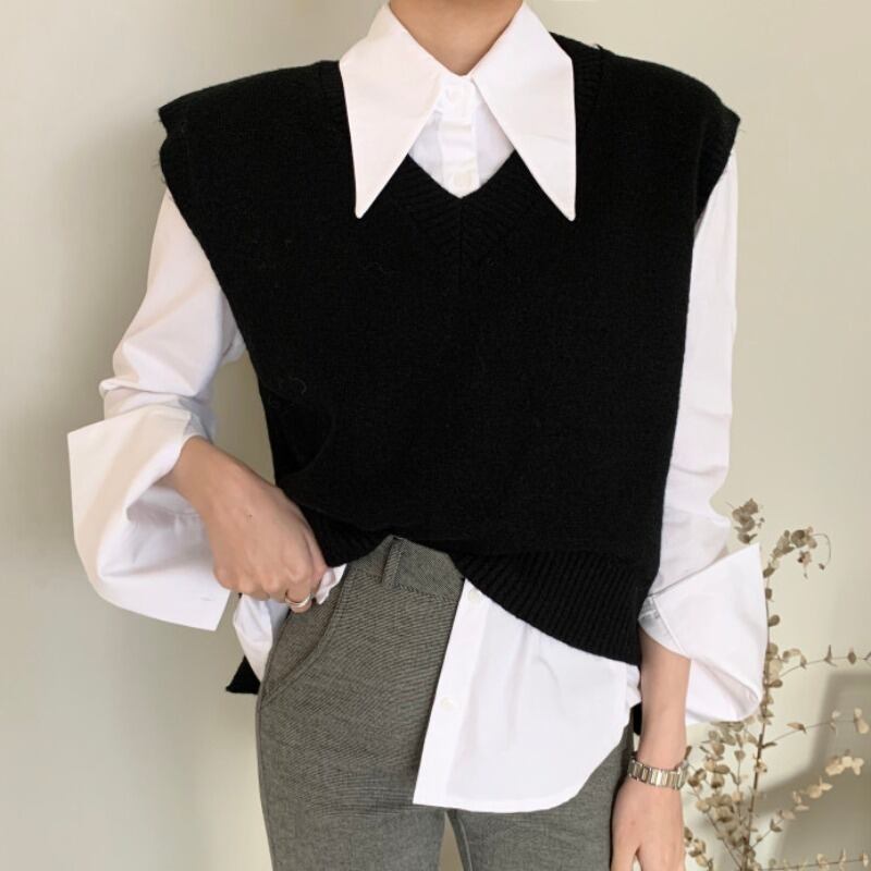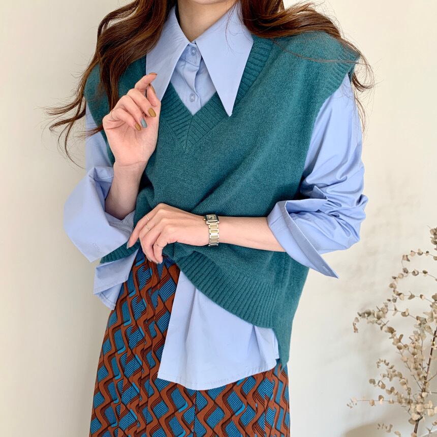 オータムVネックセーター 薄手シャツ レッド ロング 秋物 韓国婦人453459554