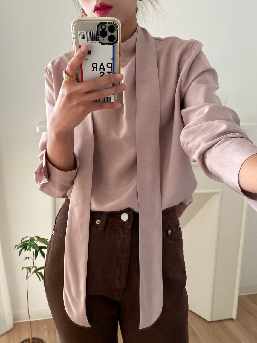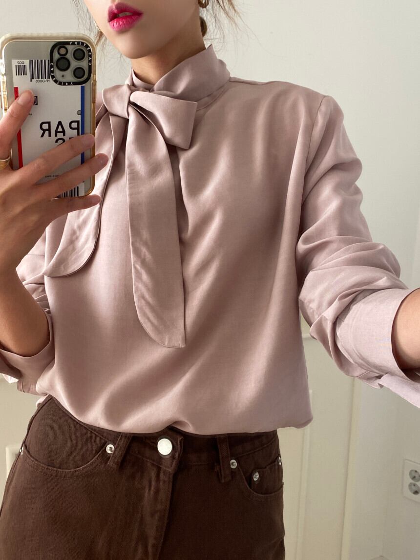 カラーリボントップス カジュアルルーズソリッド シャツ レディース ロング ソリッドカラー 韓国婦人16999817069