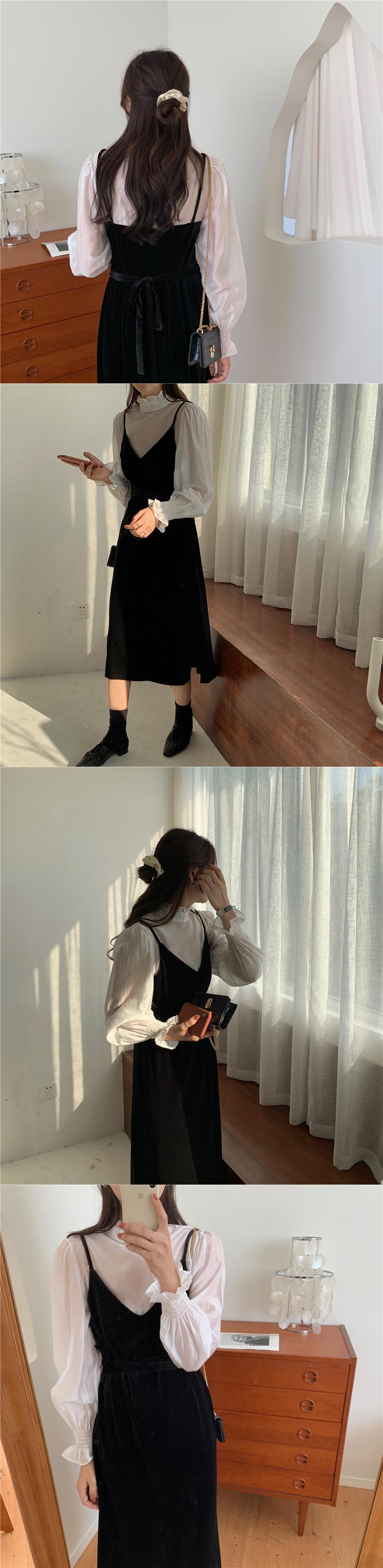 スタイルスリーブシャツ ソリッド カラースカート ドレス ソリッドカラー 韓国婦人45193314843