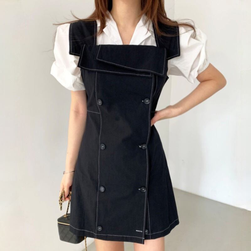 サマースリーブシャツ スタンダードスタイルダブルブレストスカート レディース レトロ 夏物 韓国婦人99805481725