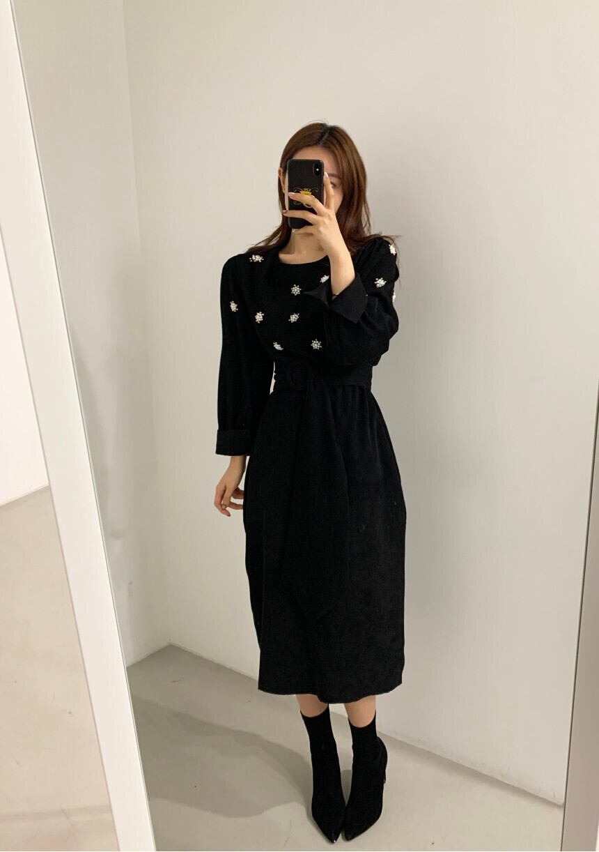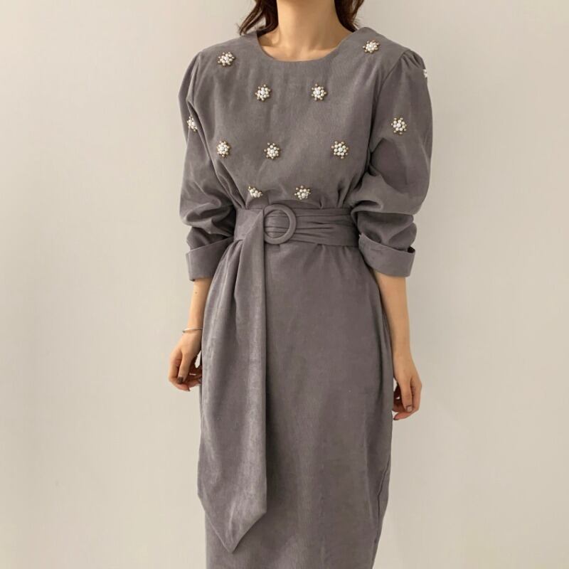 スプリングウェストスリムスタイルコーデュロイドレス 春物 韓国婦人29936560687