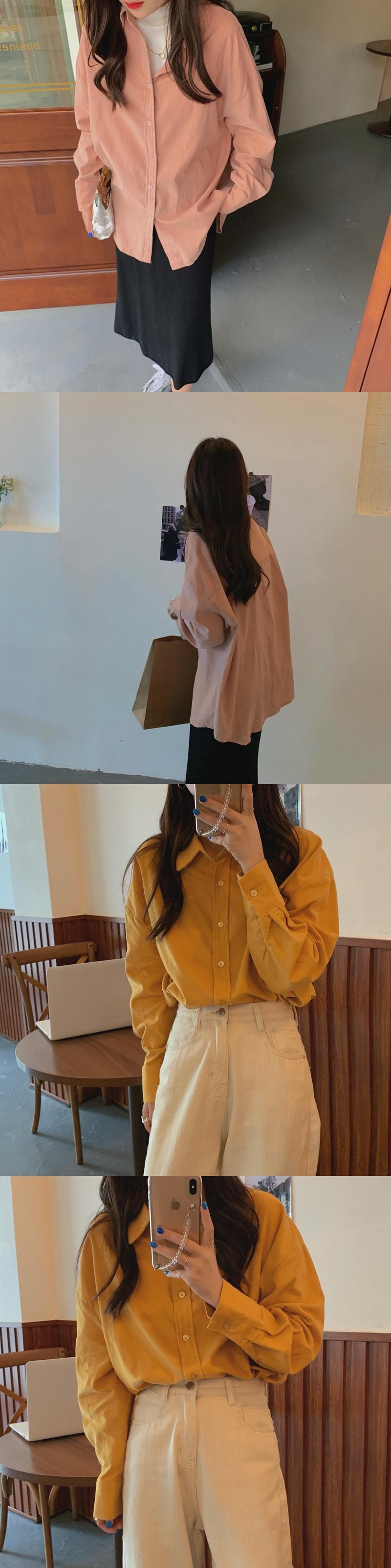 スプリングオータムシャツ ルーズコーデュロイ ロング 春物 秋物 韓国婦人1139365758