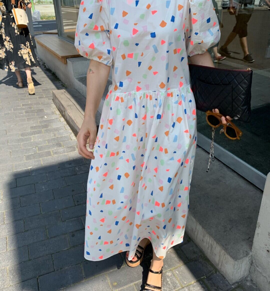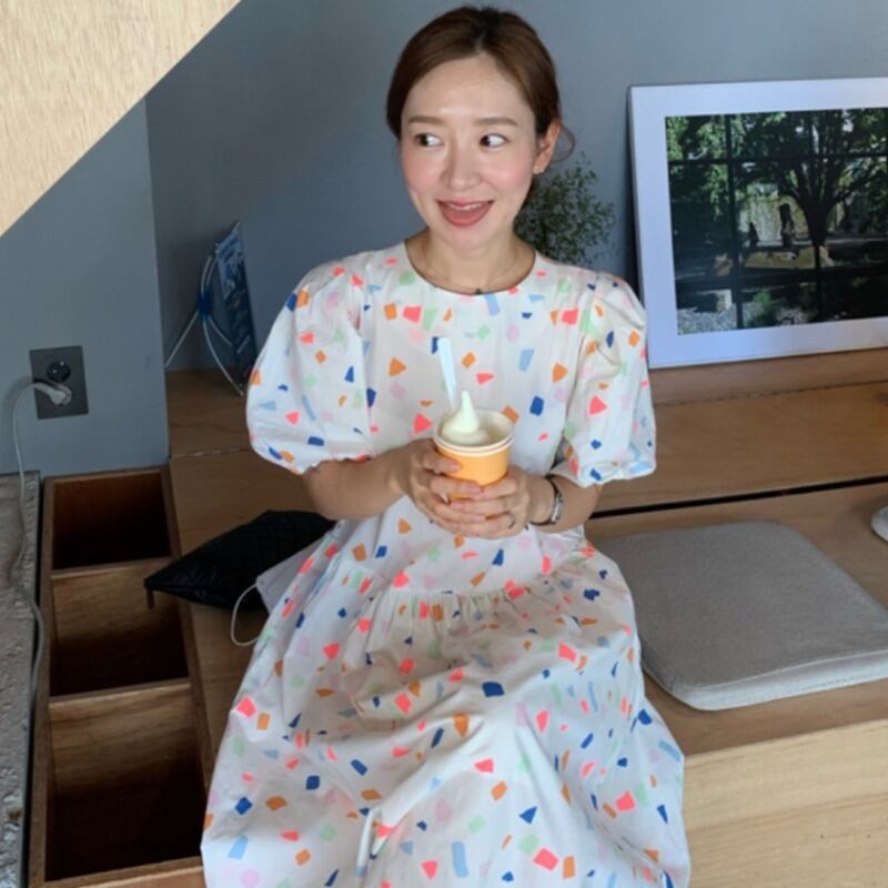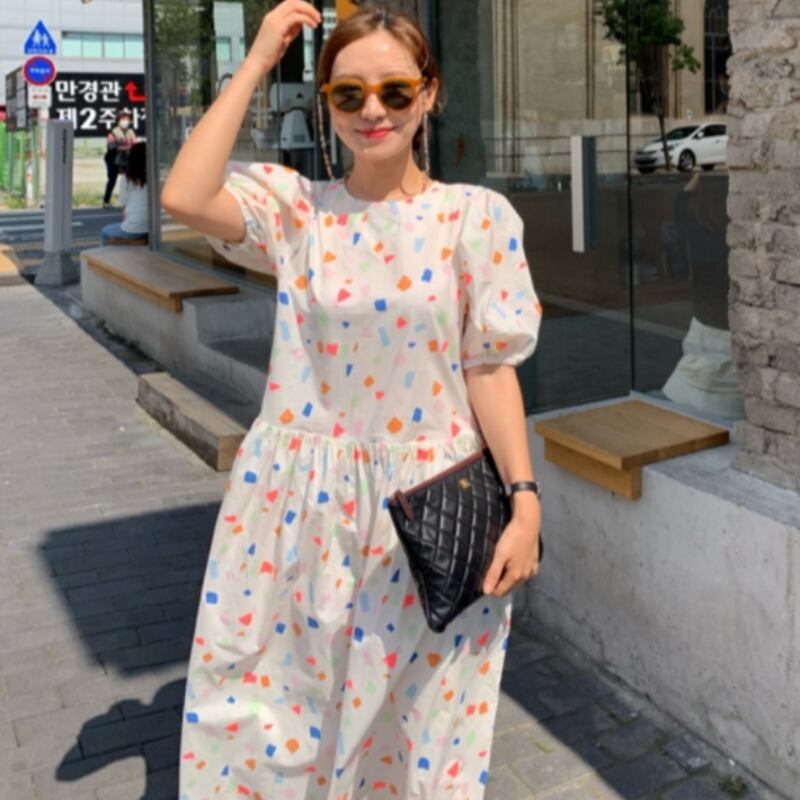ドレス サマーパターンスリーブルーズロングスカート 大人ガーリー スウィート キュート カジュアル 夏物 韓国婦人54864296798