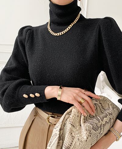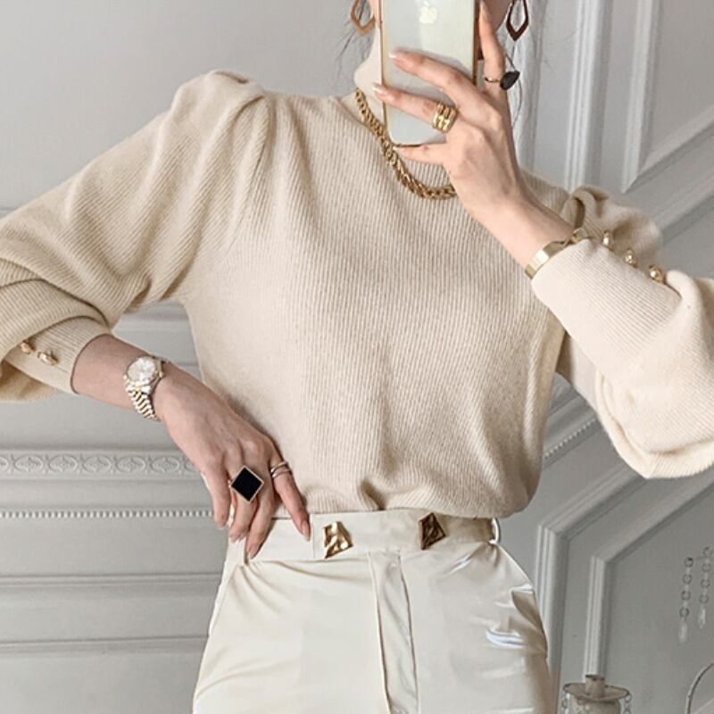 スプリングソリッド カラーメタルボタンセーター トップス レディース 春物 ソリッドカラー 韓国婦人90055681257