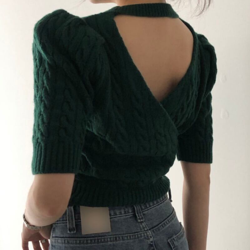 スプリングサマーニットセーター ハイウェストホルターショートフードジャケット 春物 夏物 韓国婦人26534843686