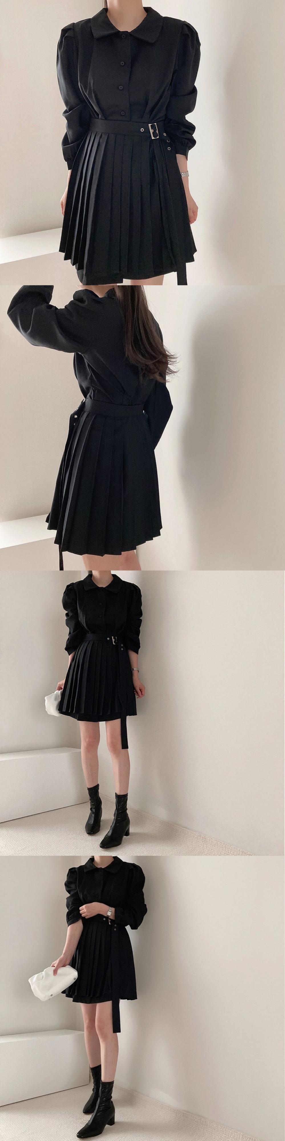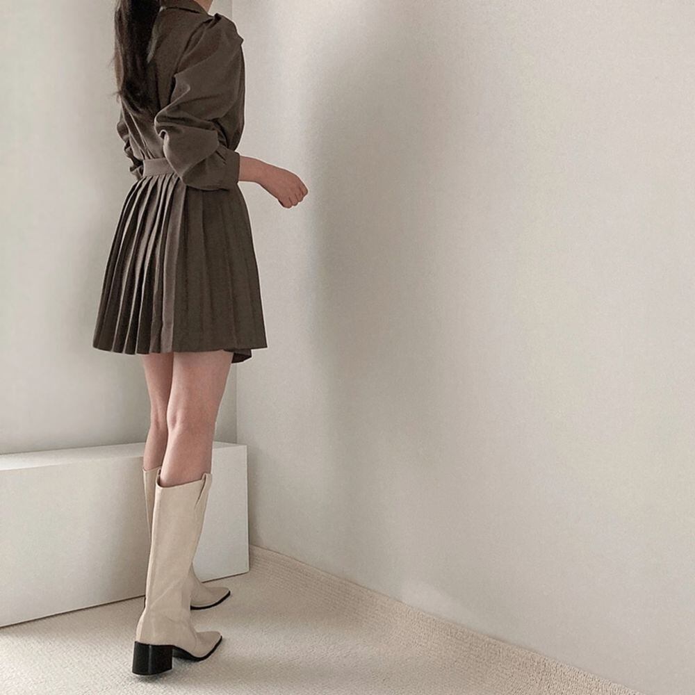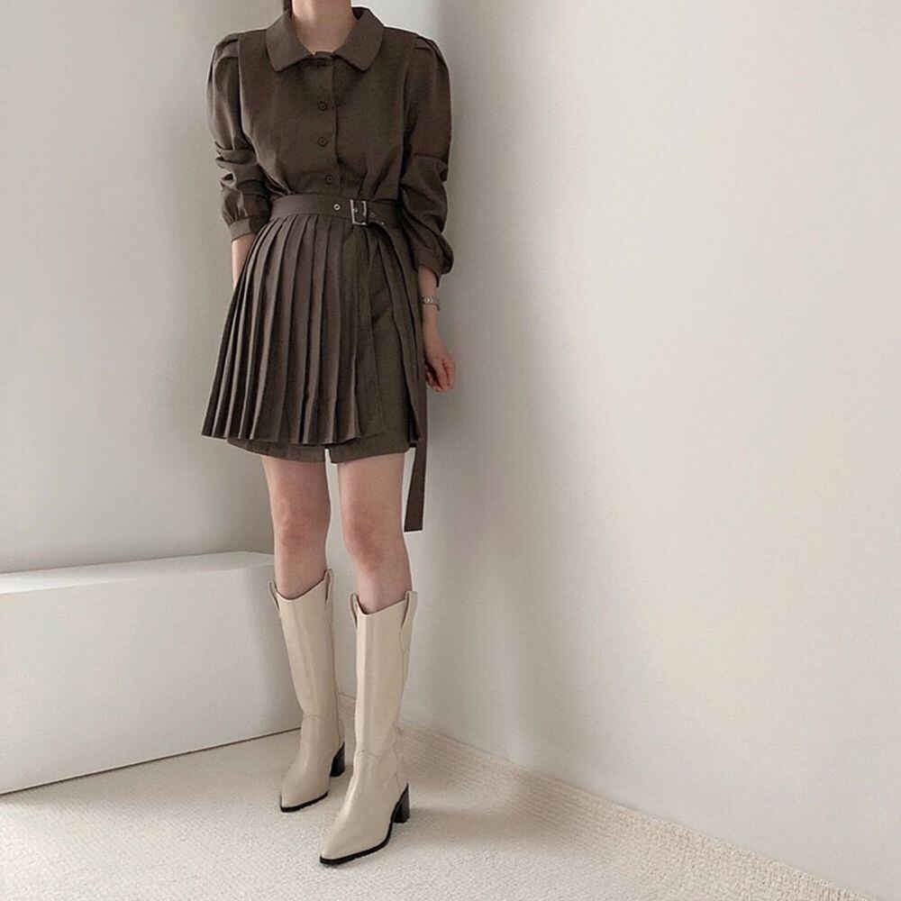 スプリングオータムドレス シャツ ハイウェストプリーツスカート 春物 秋物 韓国婦人34472023036