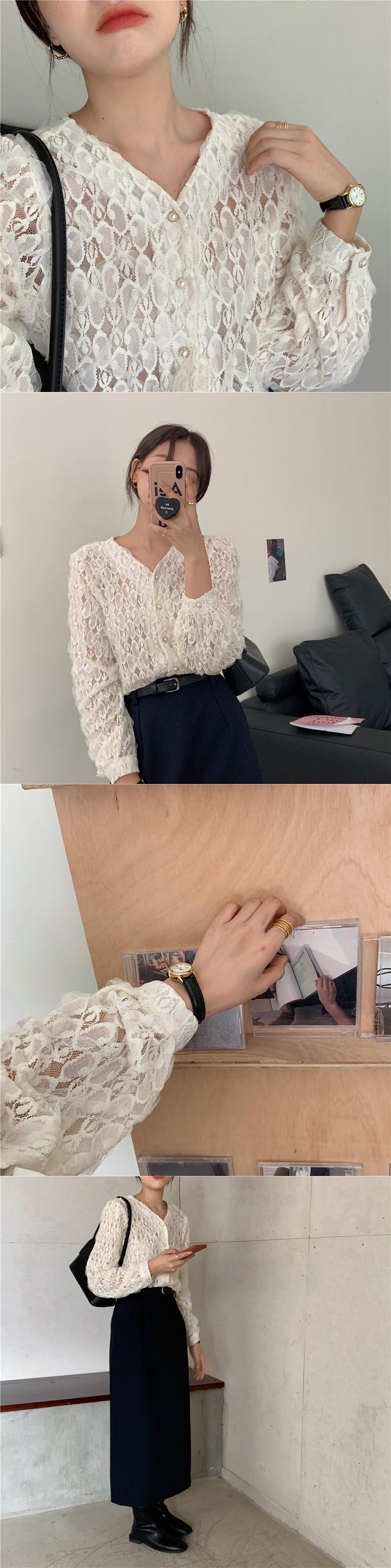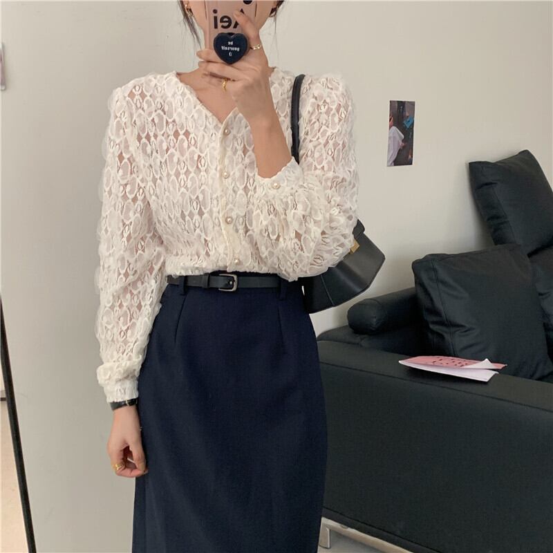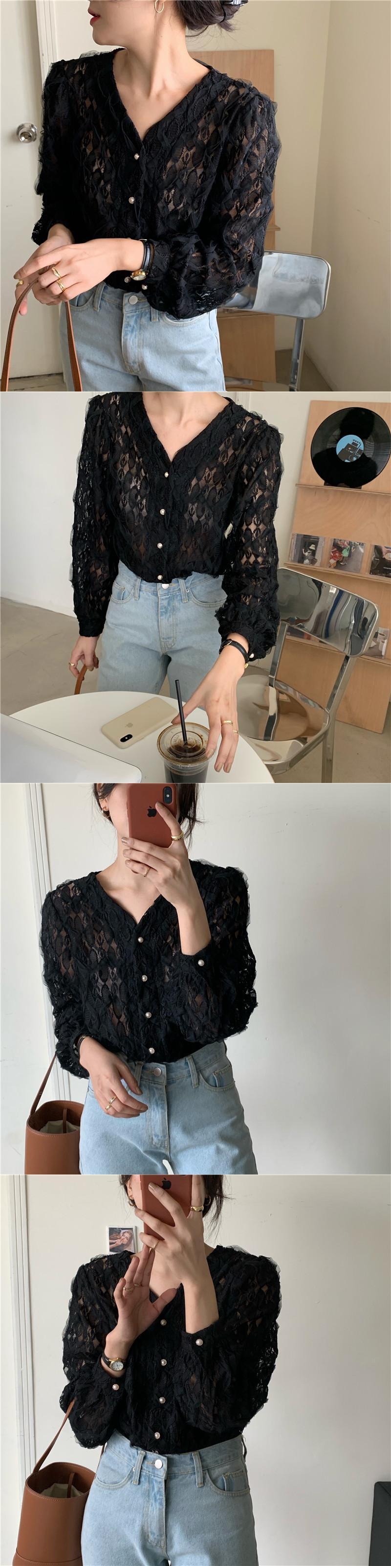 レースシャツ レディースロングメッシュスタイル 長袖 韓国婦人66250269364