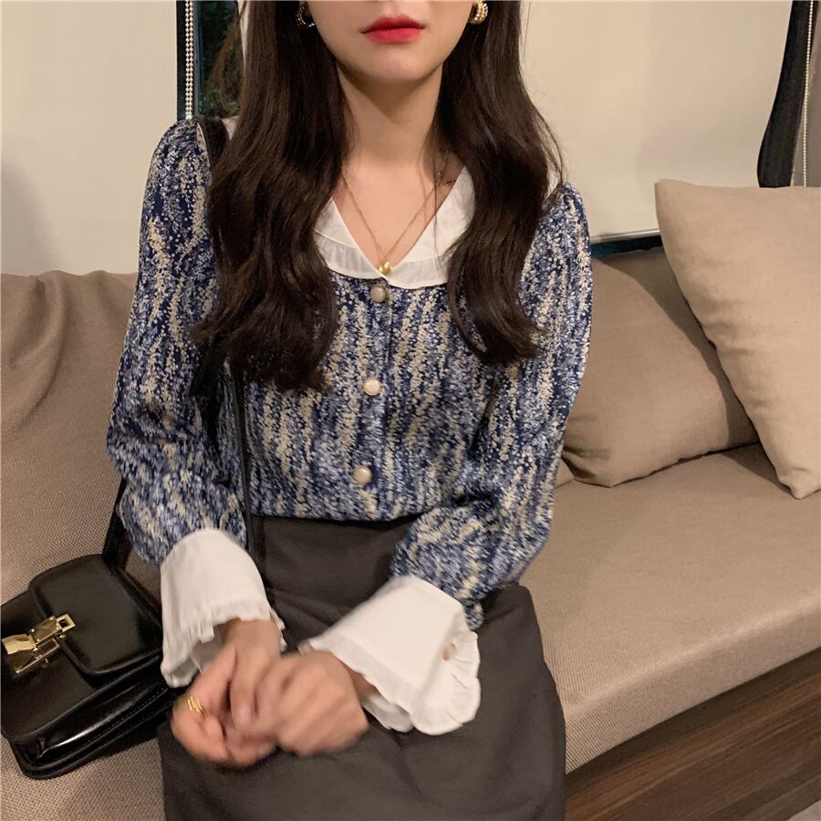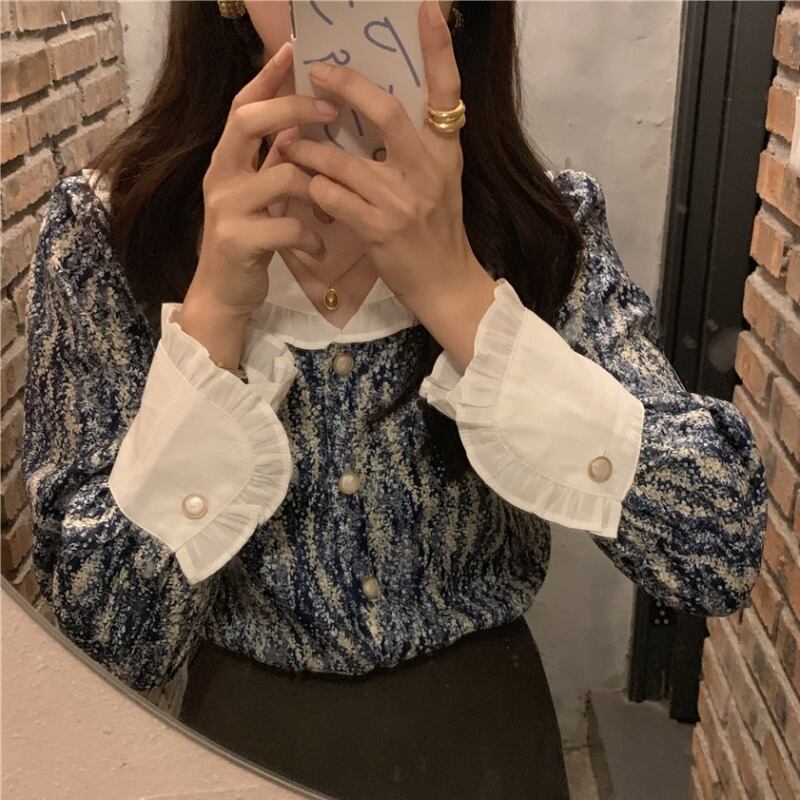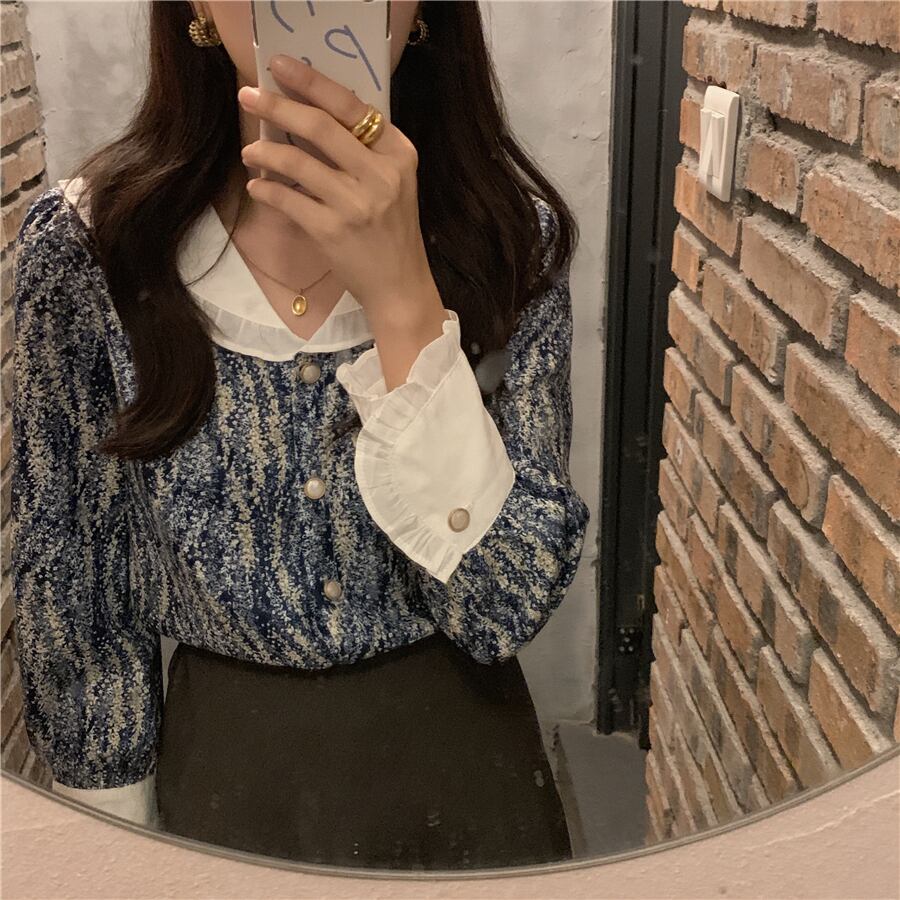 プリント柄ルーズシャツ トップス レディース ロング 韓国婦人21269044017