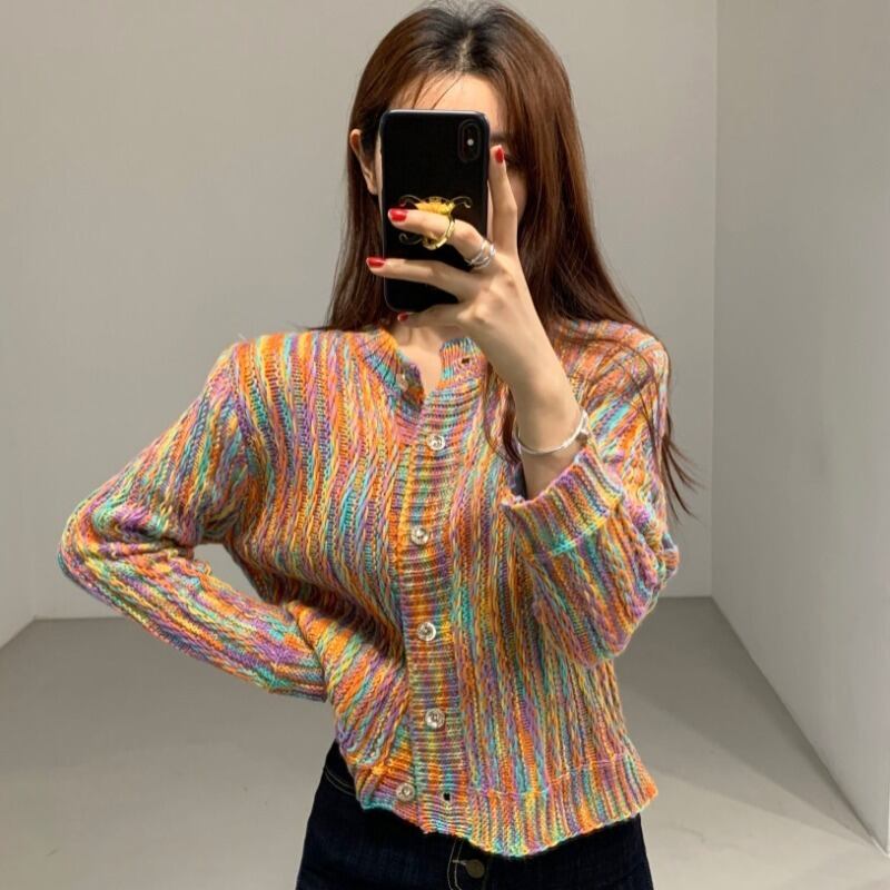 ニットカーディガントップス レディースオータムスタンダードカジュアルラウンドネックセーター ロング レトロ 秋物 Oネック 韓国婦人18362066385