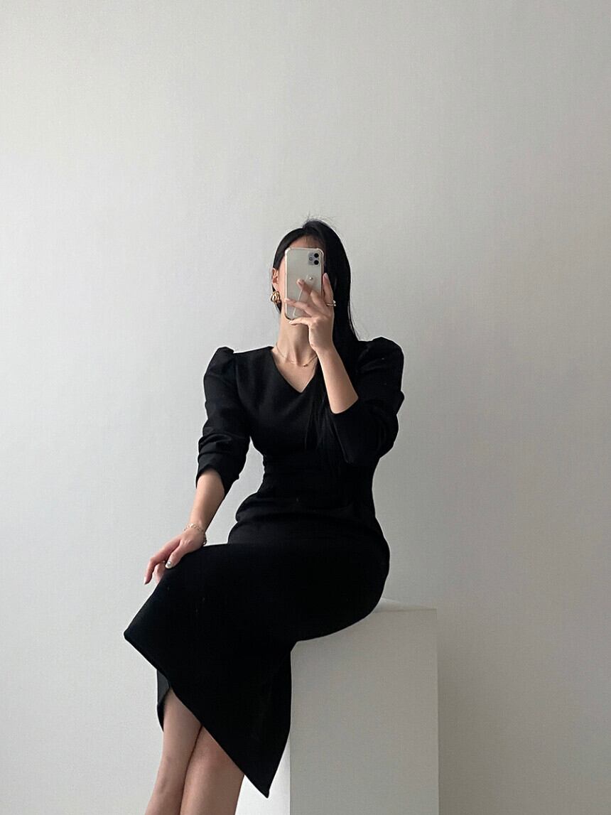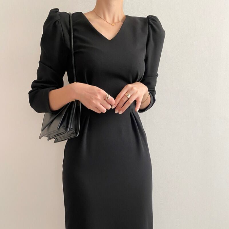 スプリングオータムVネックプリーツバックロングレディース エレガント 春物 秋物 スカート 韓国婦人84390978959