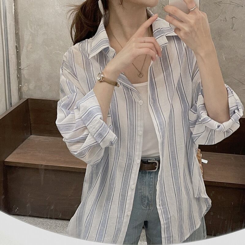 サマールーズストライプシャツ トップス ロング 夏物 韓国婦人53331404471