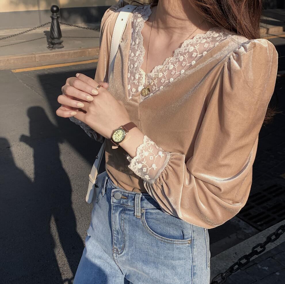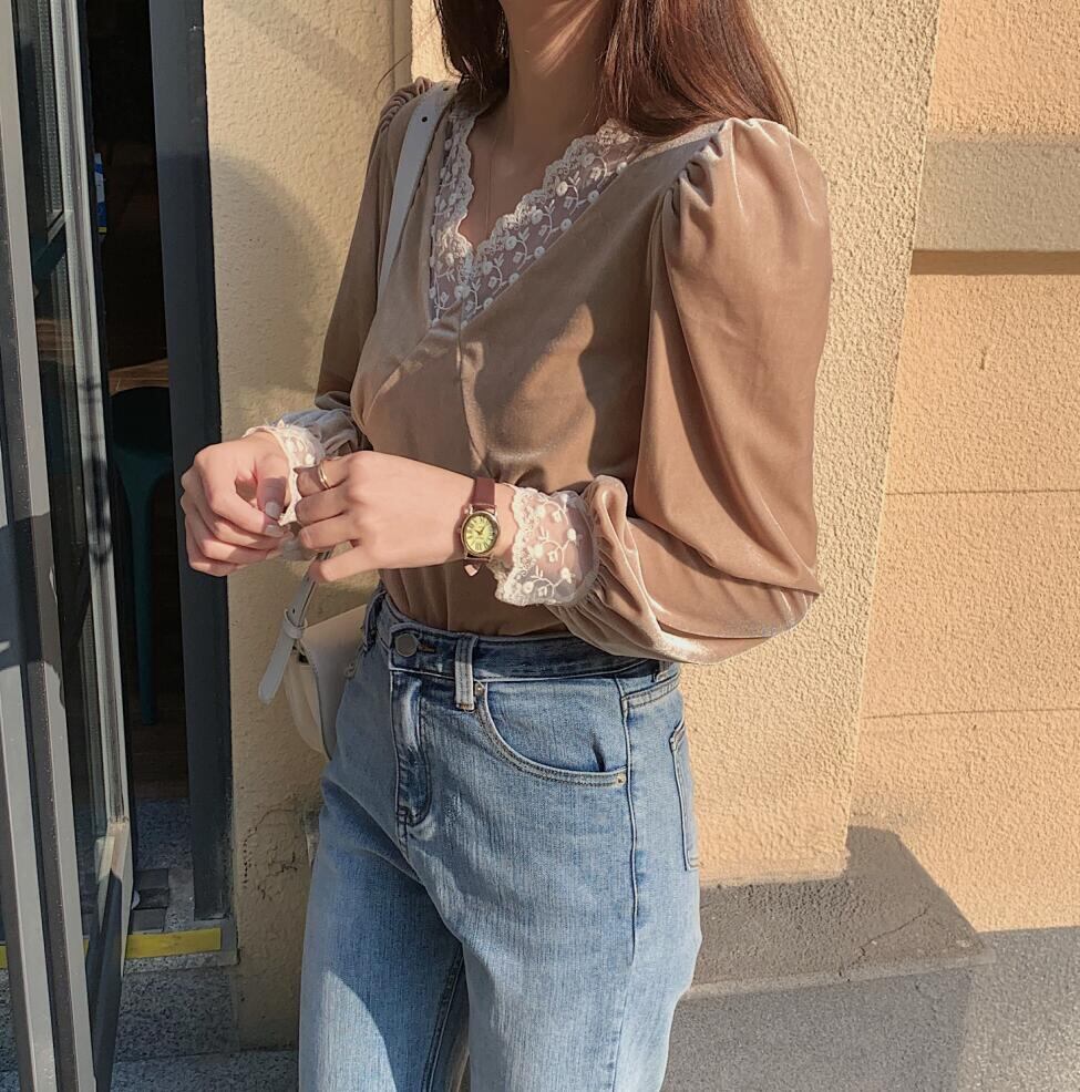 オータムウィンタースタイルスリーブシャツ スタンダードベルベットルーズ ロング ランタンスリーブ レトロ 秋物 冬物 韓国婦人39402289705