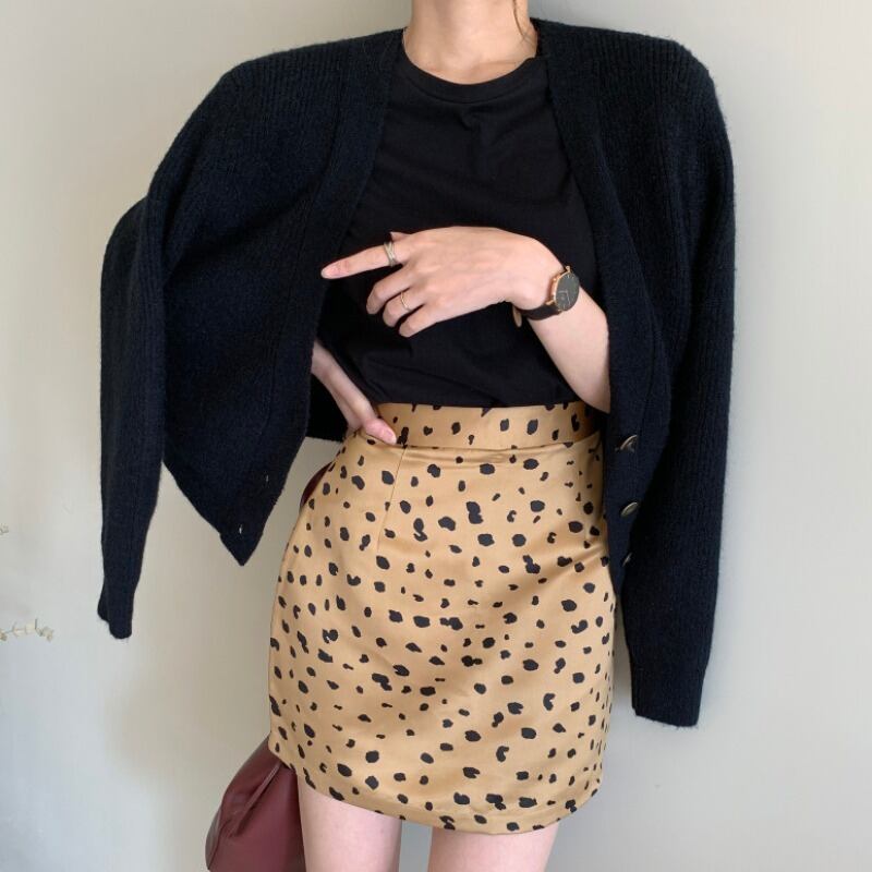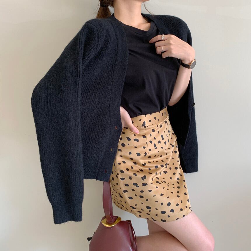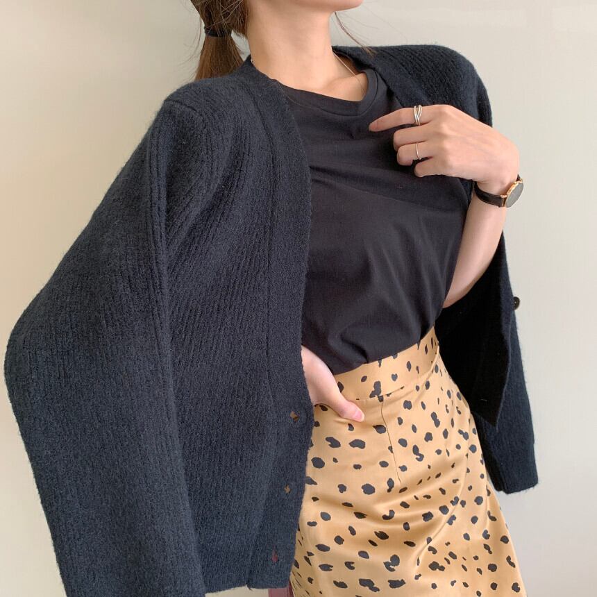 オータムソリッド カラーカーディガンセーター レオパードスカート 秋物 ソリッドカラー 韓国婦人19564863101
