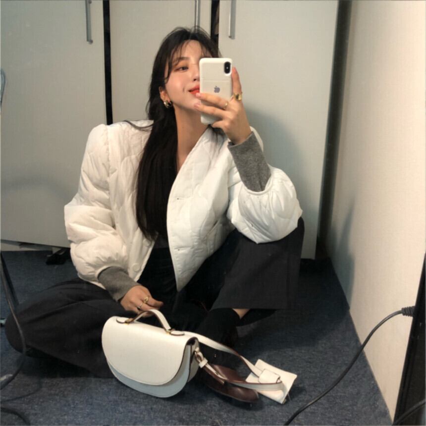 スプリングオータムラウンドネックポケット長袖スリーブショートコート レディース ロング コットン 春物 秋物 Oネック 韓国婦人84819484824