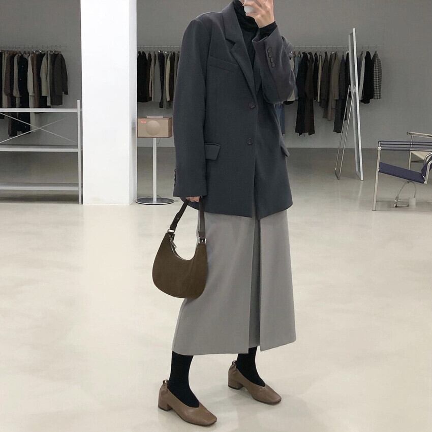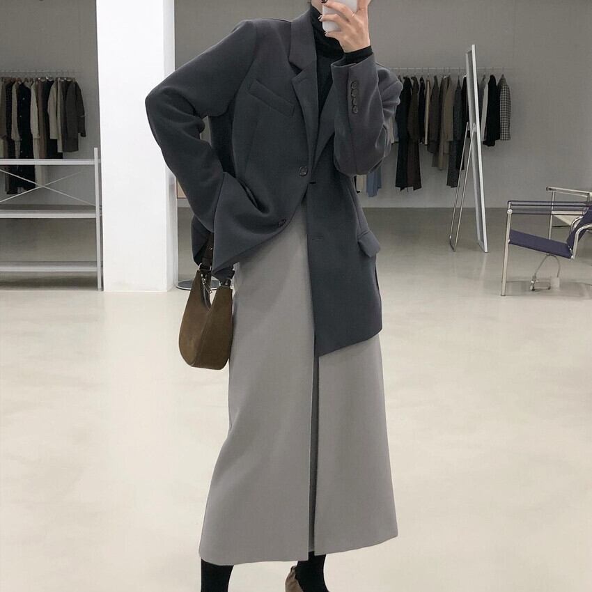 オータムウィンターハイウェストウェストスカート スタンダードカーディガンジャケット レディース レトロ 秋物 冬物 韓国婦人33757754701