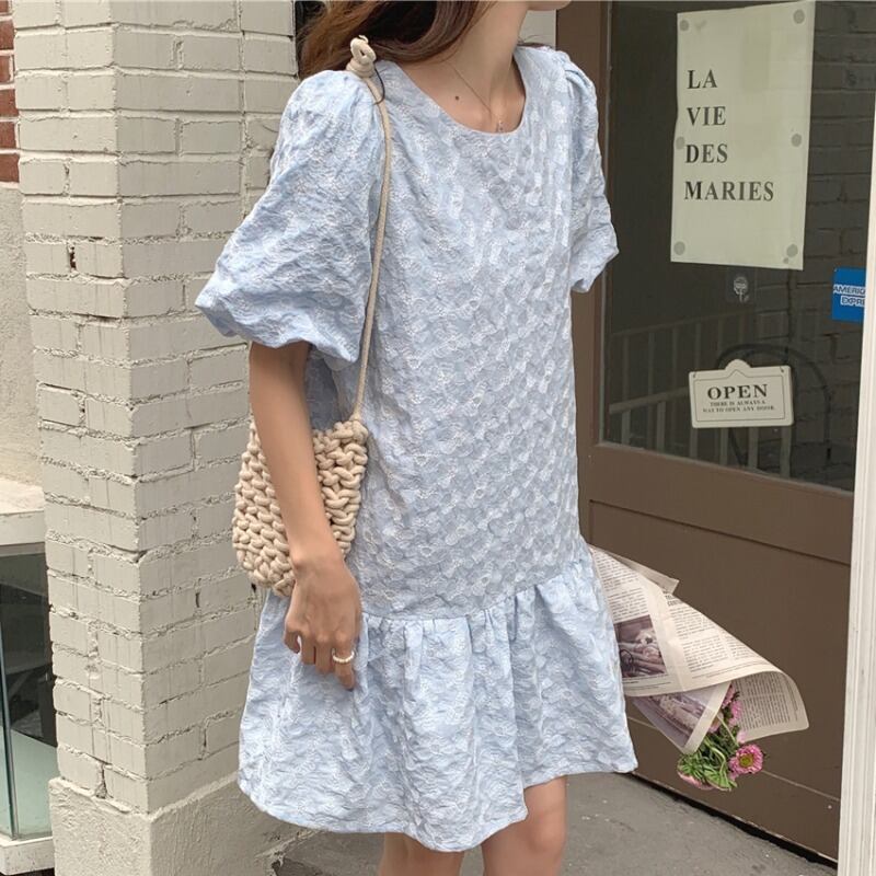 スタンダードルーズスリーブドレス サマースカート レッド レトロ 刺繍 大人ガーリー スウィート キュート カジュアル 夏物 韓国婦人60340892686