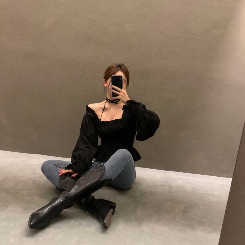 オータムプリーツシャツ カラーウェストスリーブトップス ランタンスリーブ エレガント 秋物 スクウェア 韓国婦人26416823941