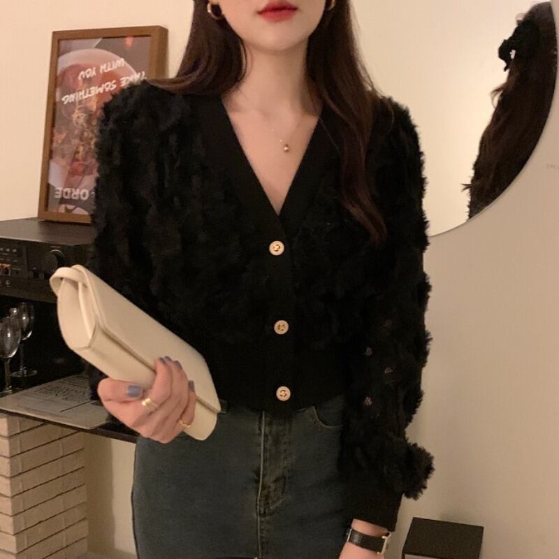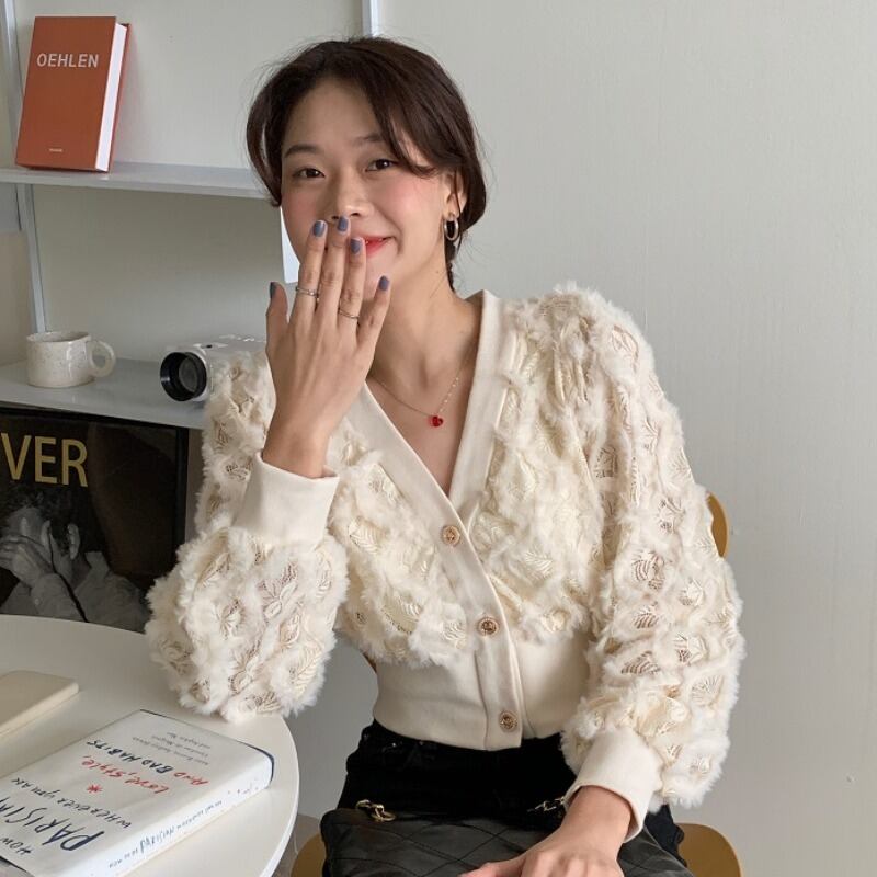 スプリングVネックレースシャツ ブラウス ショートスタイル 春物 韓国婦人67592266731