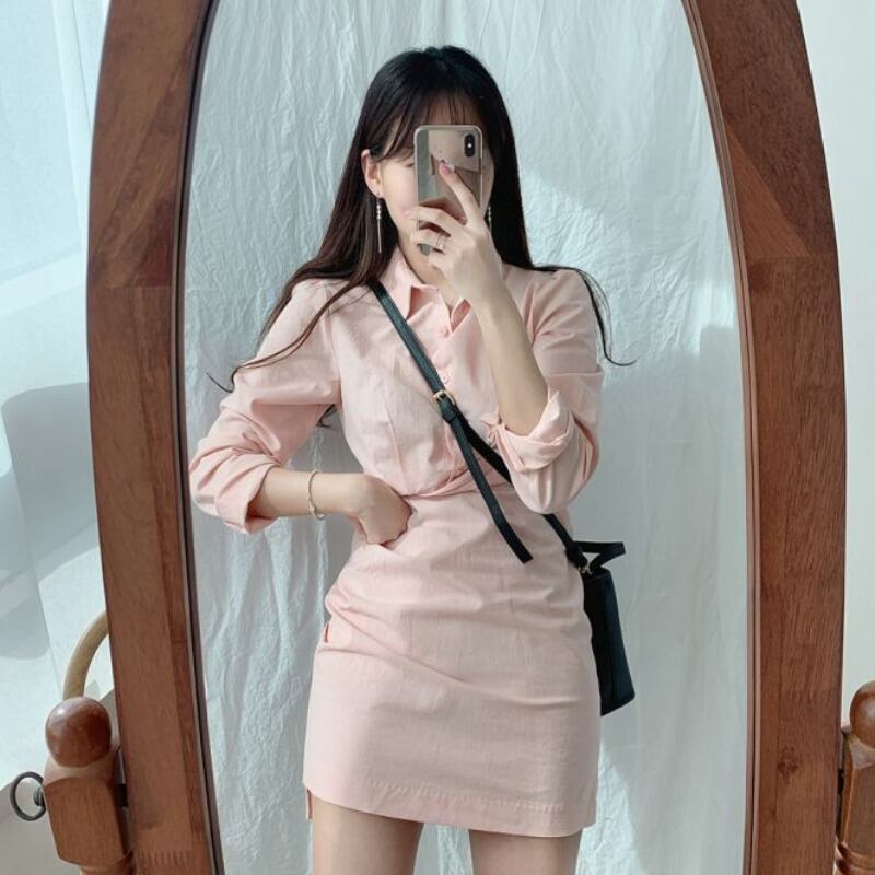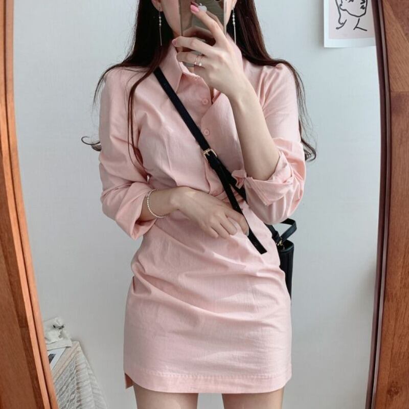 スプリングスタイルスタンダードシャツ ロング レトロ 長袖 春物 韓国婦人23944124578