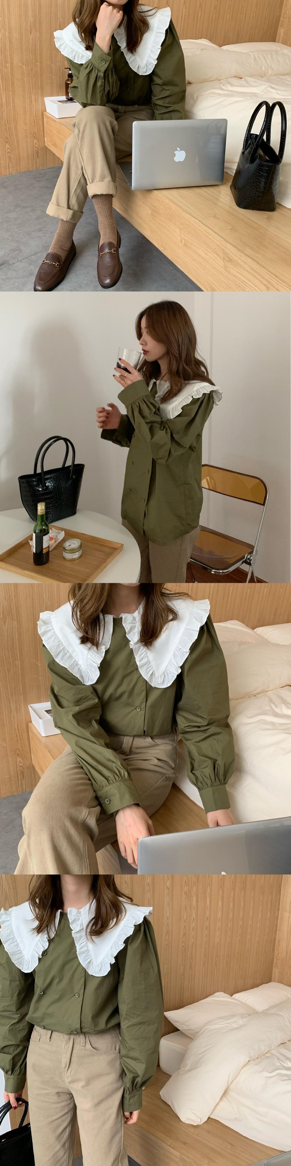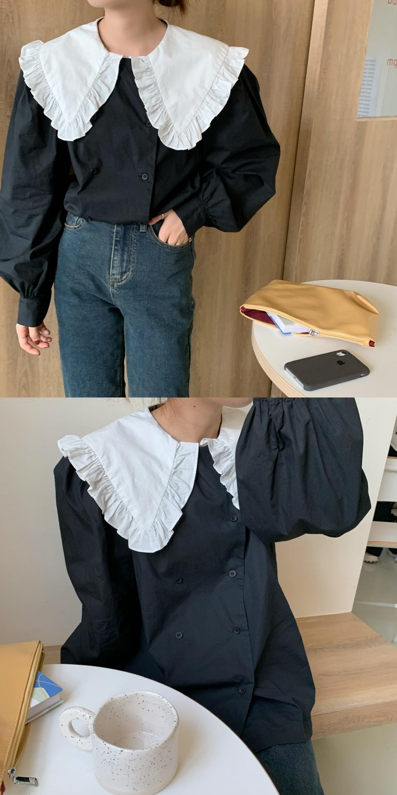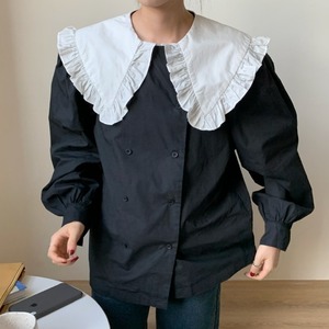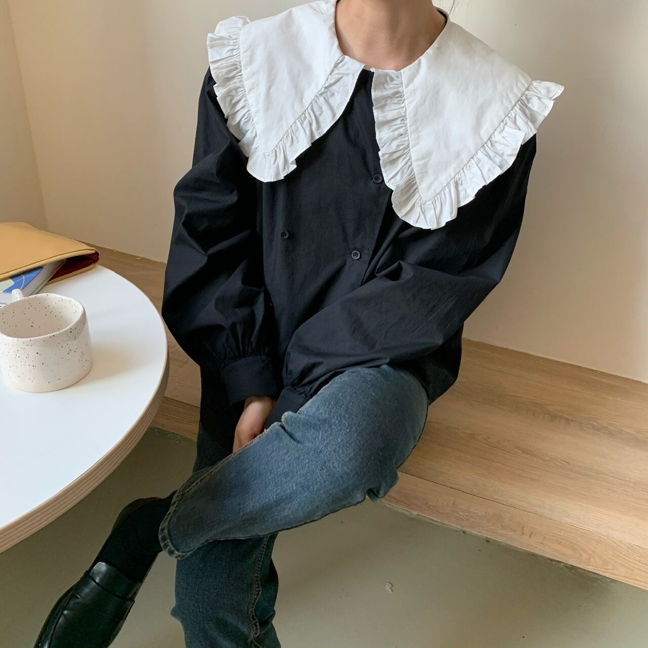 スプリングカラーシャツ カジュアルルーズトップス ロング 春物 韓国婦人15398640597