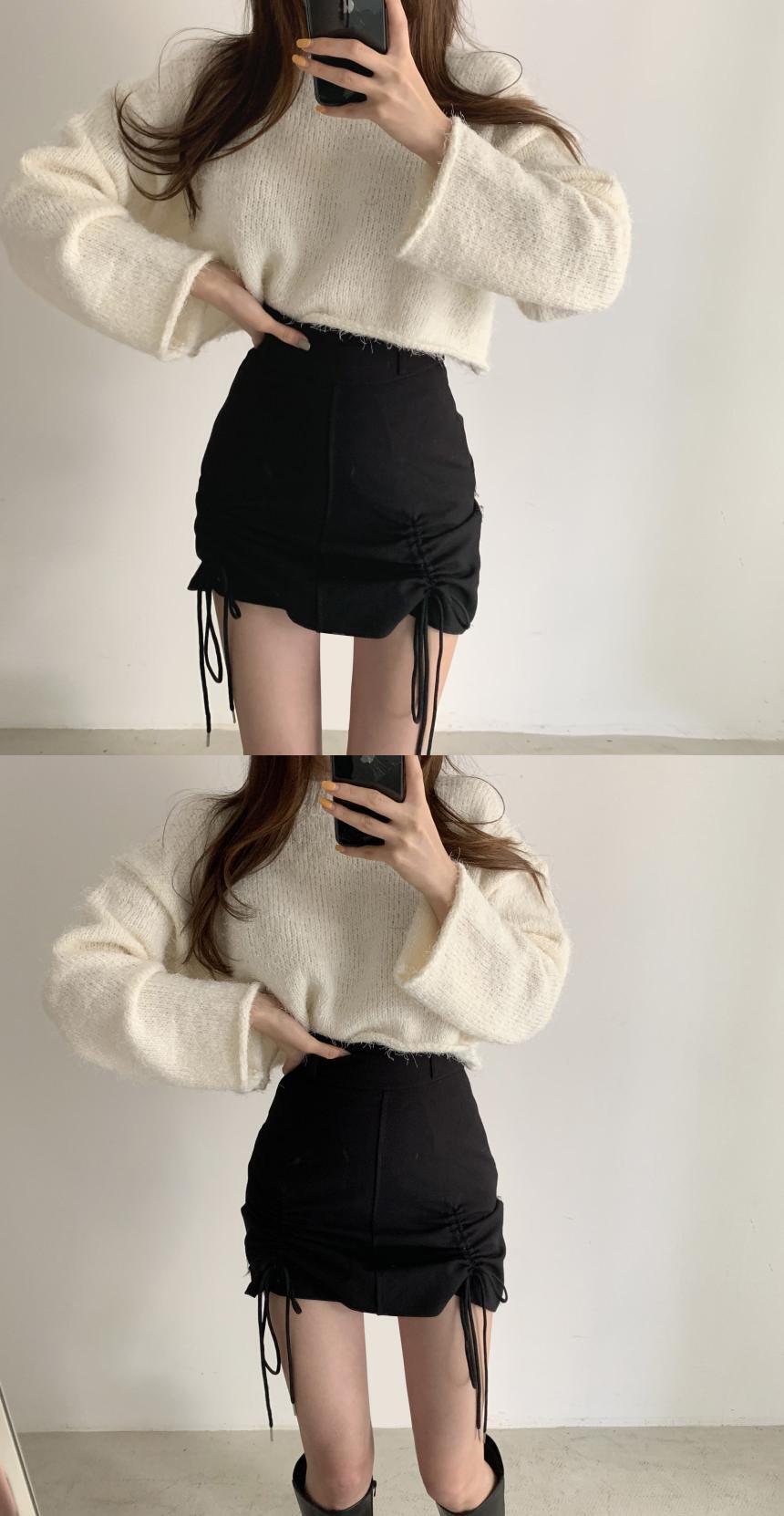オータムウィンタースリーブラウンドネックセーター ハイウェストウェストギャザースカート レッド 秋物 冬物 Oネック 韓国婦人58475243700
