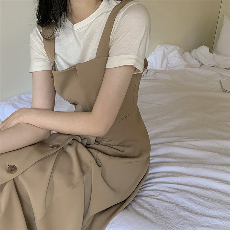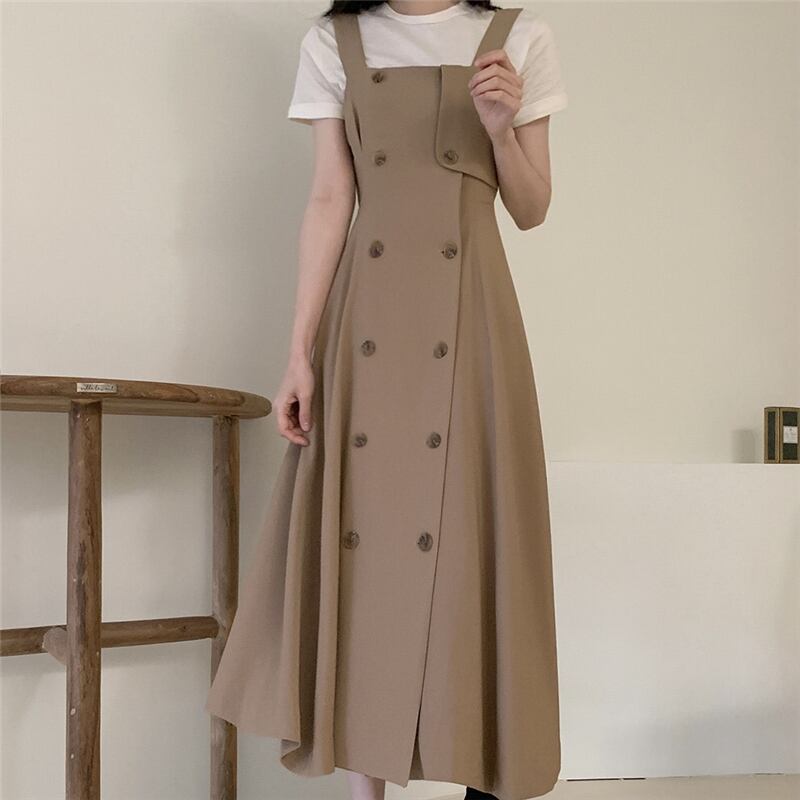 サマースタイルベーシックTシャツ ダブルブレストドレス エレガント 夏物 韓国婦人35359924284