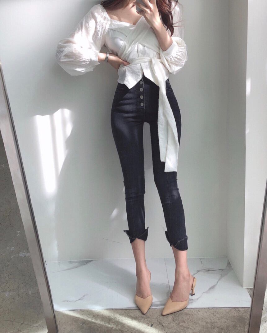 シャツ 薄手ショートトップス ロング 韓国婦人52956449139