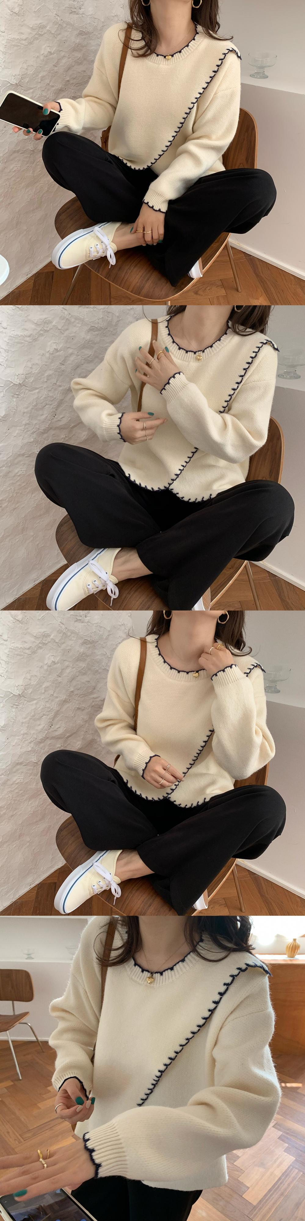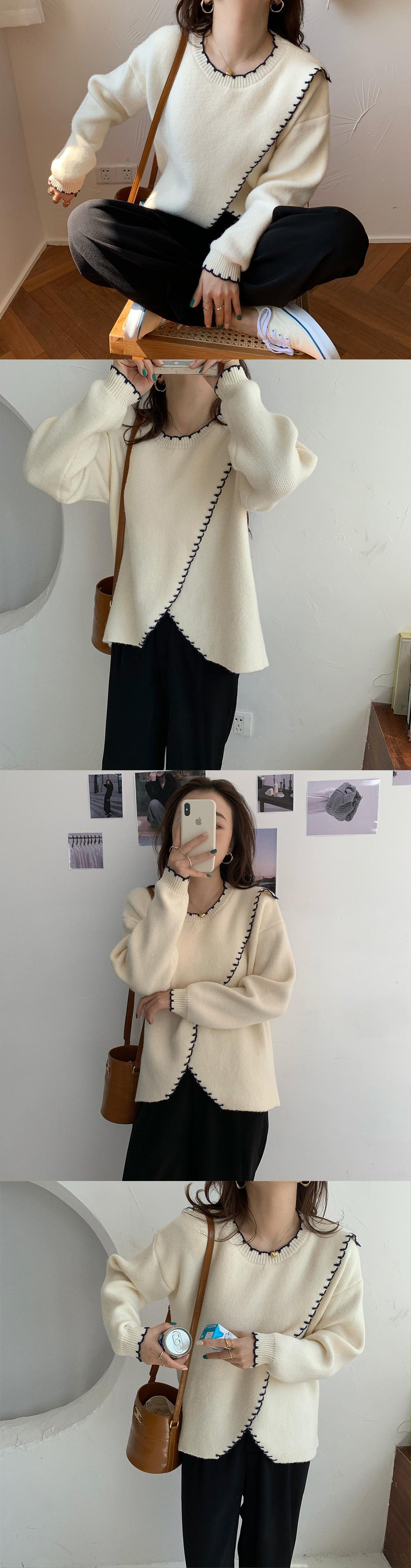 スプリングスタンダードスタイルサイドスリットセーター ルーズラウンドネックレディース ロング レトロ エレガント 春物 Oネック 韓国婦人30513219468