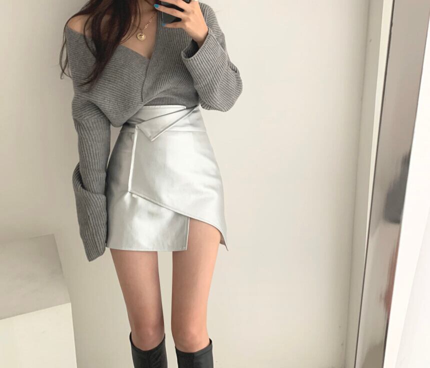 色:アプリコットセーター,グレーのセーター,シルバースカートSサイズ,シルバースカートM,ブラックスカートSサイズ,黒スカートM