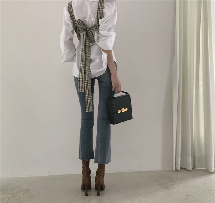 オータムスタイルホワイトシャツ 格子柄レディース ロング 秋物 韓国婦人65922357441
