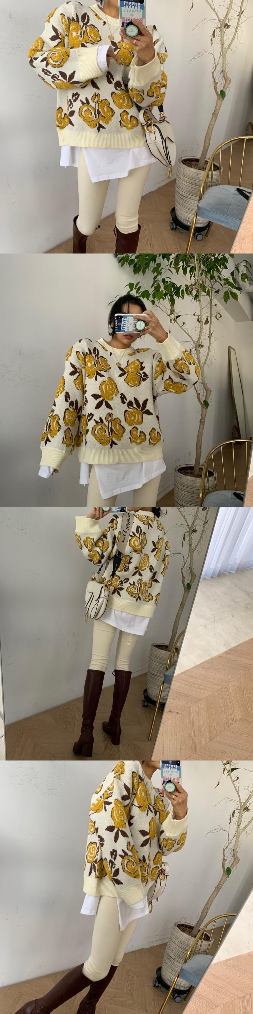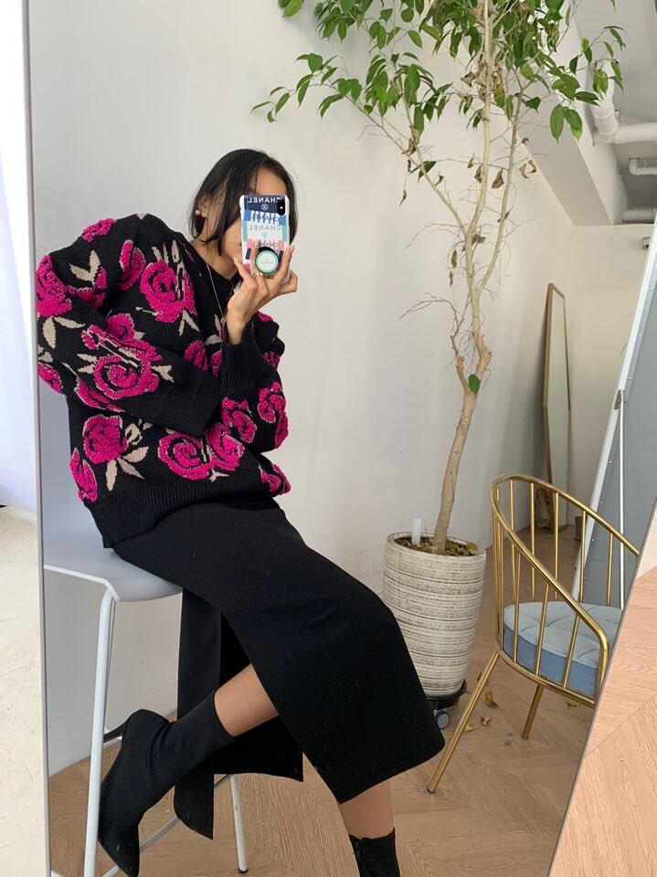 Flowerデザイン プルオーバー セーター レディースルーズニットオータムウィンタートップス 秋物 冬物 フラワーデザイン 韓国婦人64538821059