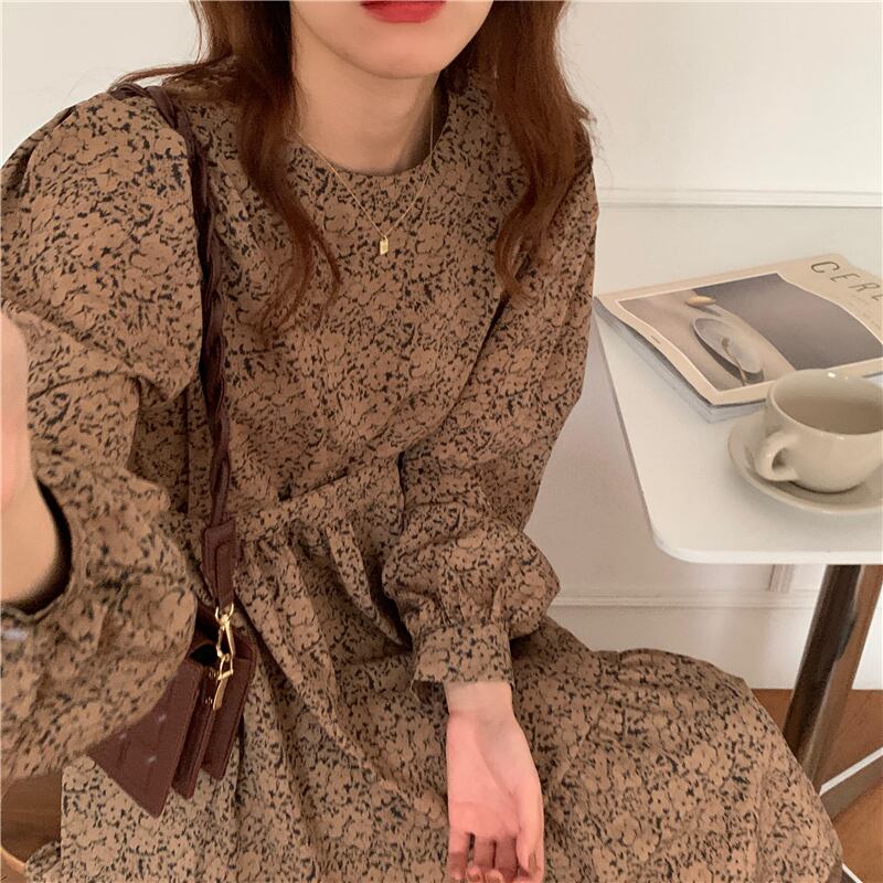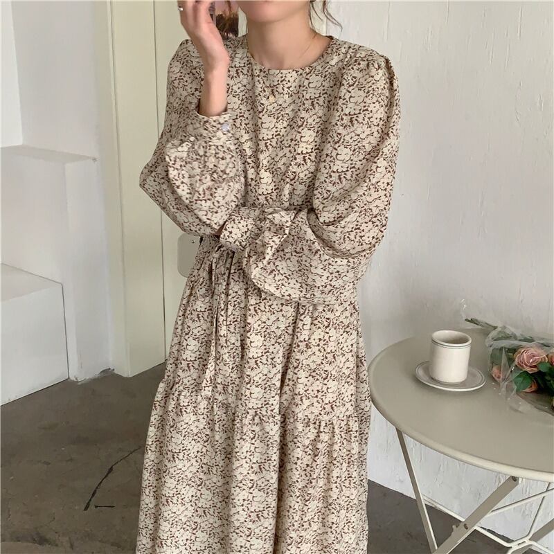スプリングギャザーレースウェストフローラルドレス ロングスカート 春物 花柄 韓国婦人49832224395