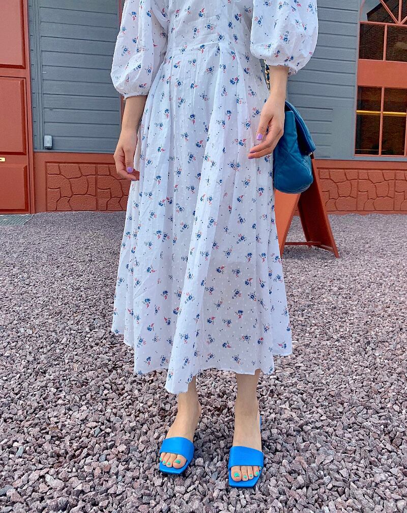 フローラルドレス サマースタンダードオレンジスカート レトロ 夏物 花柄 韓国婦人40539522282