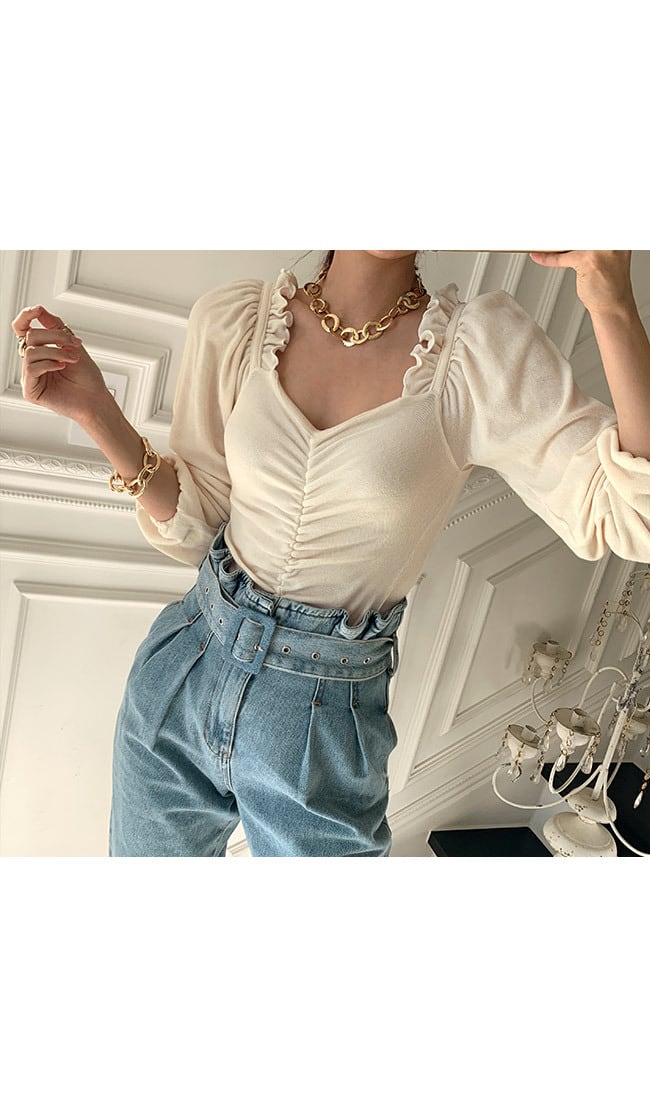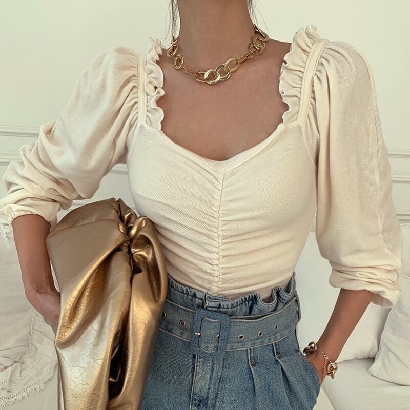 Tシャツ シャツ スプリングソリッド カラートップス ロング 春物 ソリッドカラー スクウェア 韓国婦人18420006211