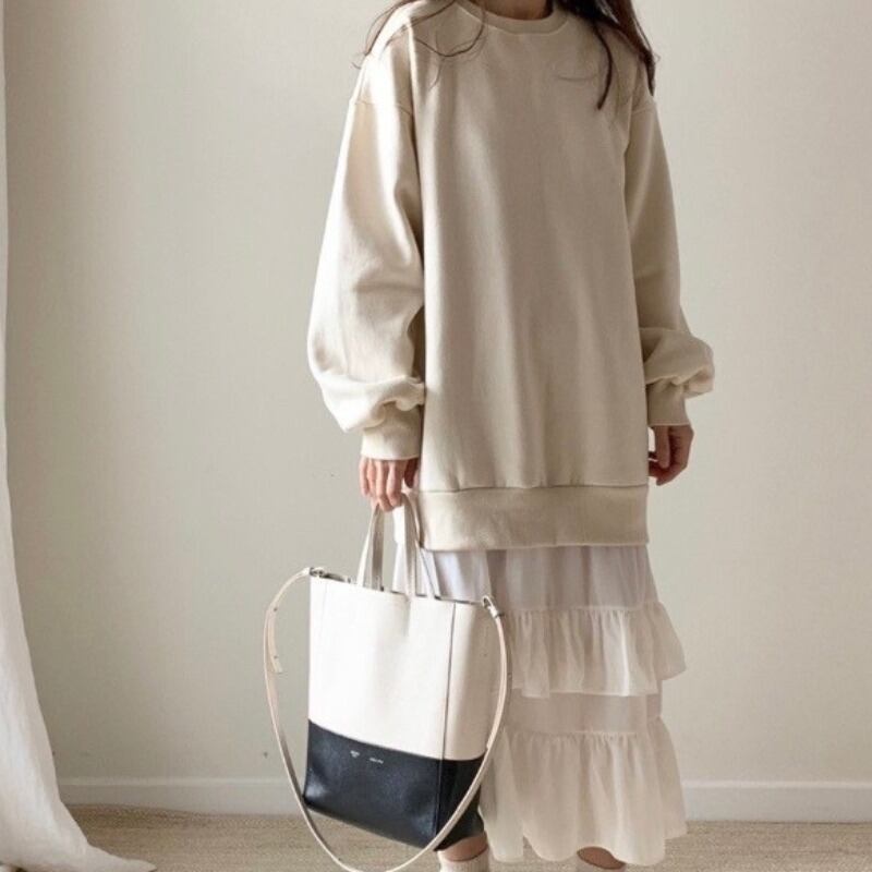 オータムウィンターラウンドネックツーピースベルベットセーター ドレス 秋物 冬物 Oネック 韓国婦人44483491818