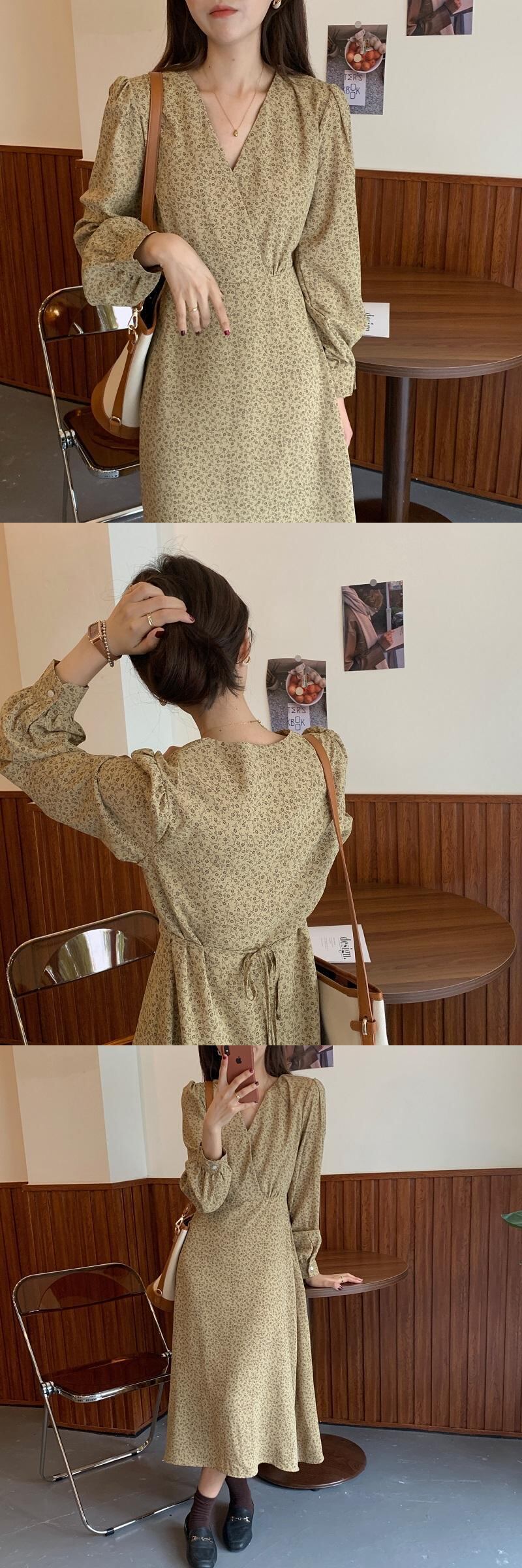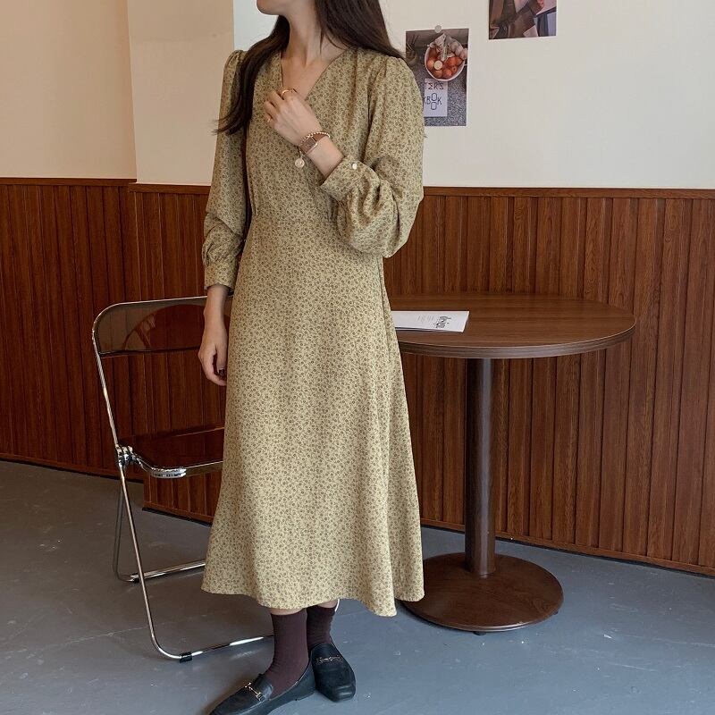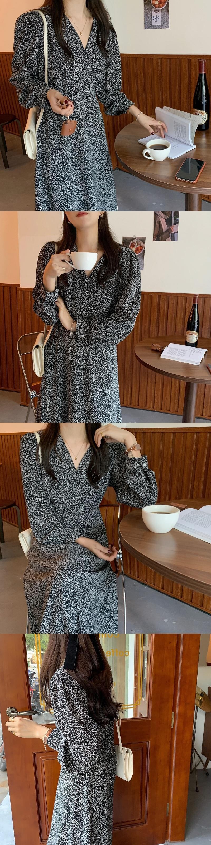 スプリングVネックフローラルシフォンウェストベルト スリムドレス ロング 大人ガーリー スウィート キュート カジュアル 春物 ハーネス 花柄 韓国婦人53076560864