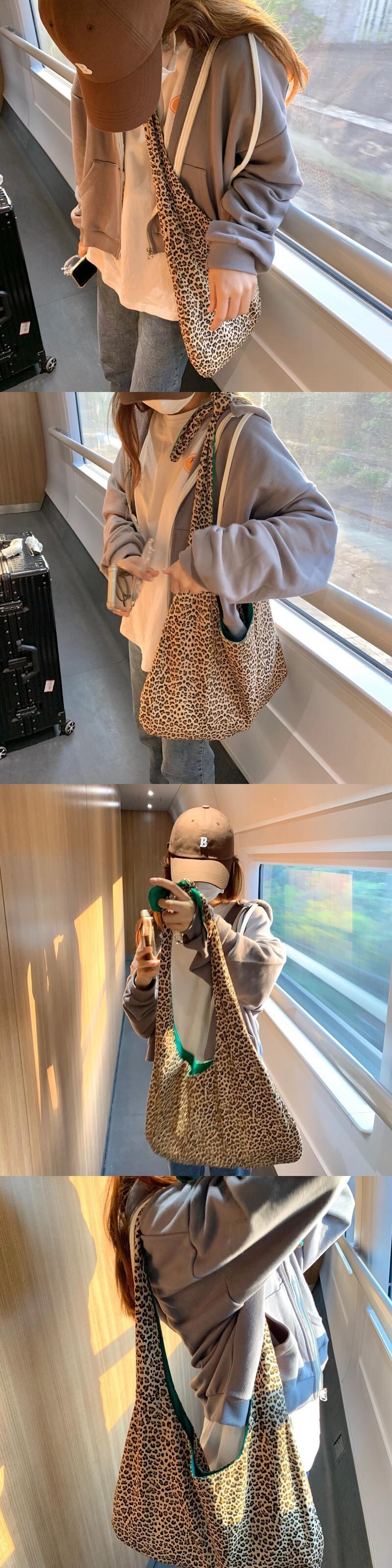 レッドオータムウィンターレオパードプリント柄ショルダーバッグ 秋物 冬物 トートバッグ 韓国婦人51569925577