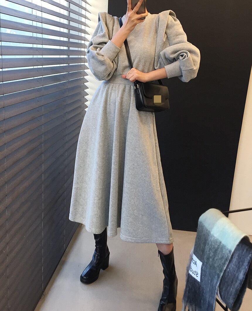 スプリングオータムウェスト薄手ソリッド カラーセーター ドレス ロングスカート レディース 春物 秋物 ソリッドカラー 韓国婦人20128939780