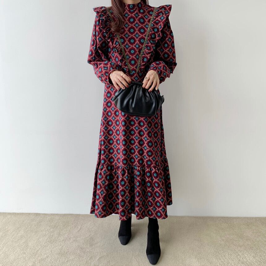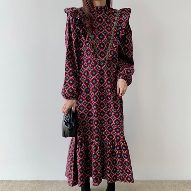 オータムスタイルカラールーズハイウェストウェスト薄手ドレス レディース 秋物 ステッチ 韓国婦人29575922110