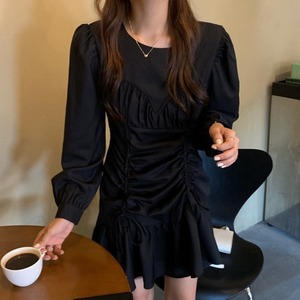 オータムギャザーAラインスカート ウェストドレス 秋物 韓国婦人95319867843