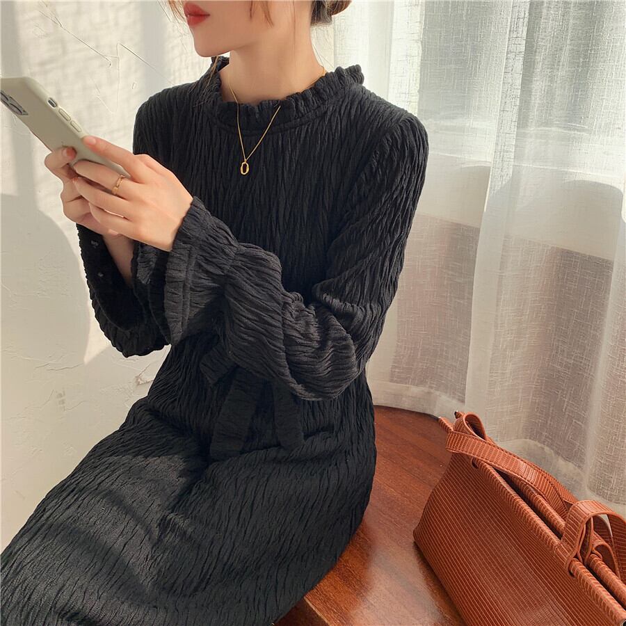ドレス オータムウィンターカラーストラップ 薄手ロングスカート レディース 秋物 冬物 韓国婦人49216014407