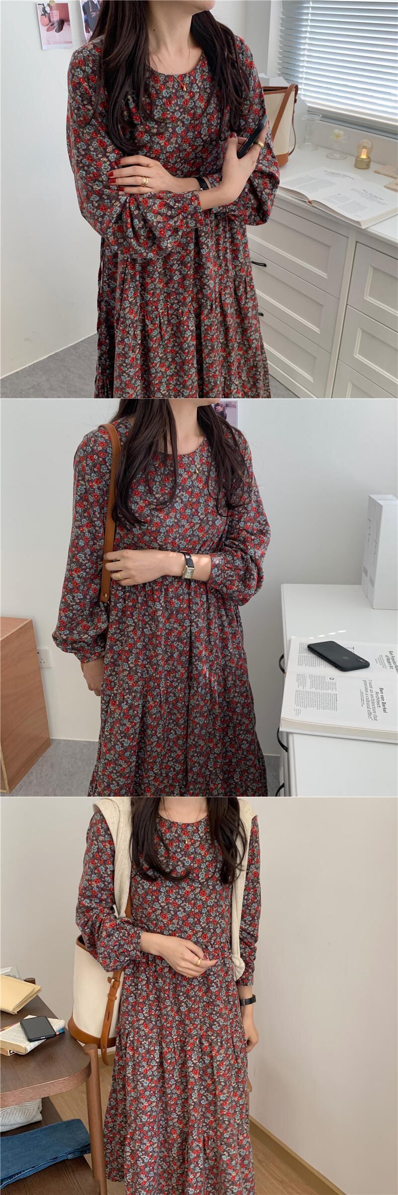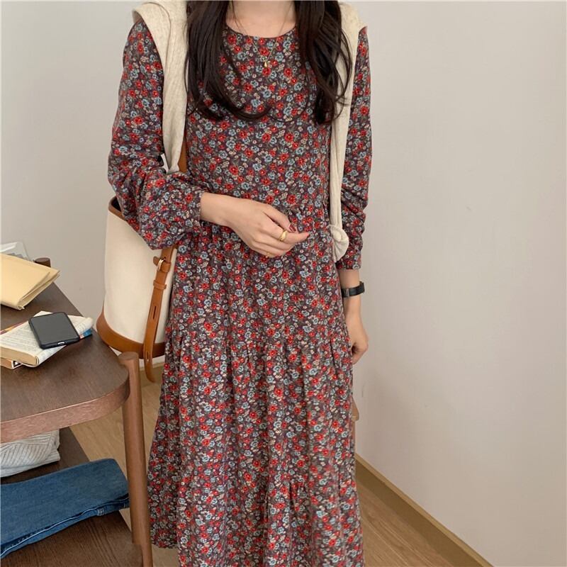 スプリングオータムスタンダードフローラルドレス スカート ロング レトロ 春物 秋物 花柄 韓国婦人46813954599