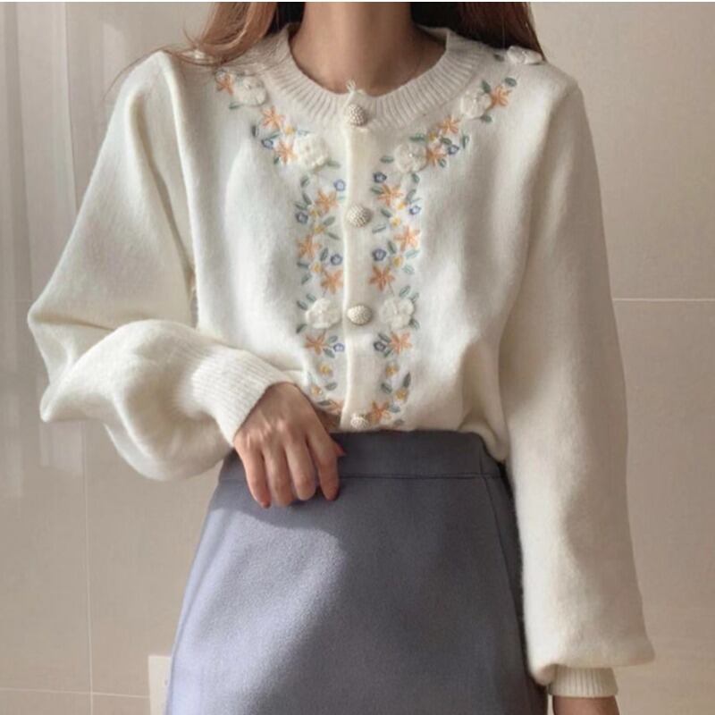 ホワイトセーター ルーズカーディガンジャケット オータム 秋物 韓国婦人52473926385