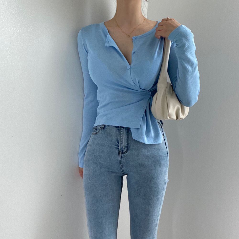 サイドバックルニットカーディガンシャツ 薄手セーター オータム ロング 秋物 シルク 韓国婦人97848106972