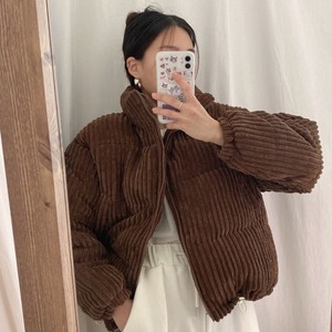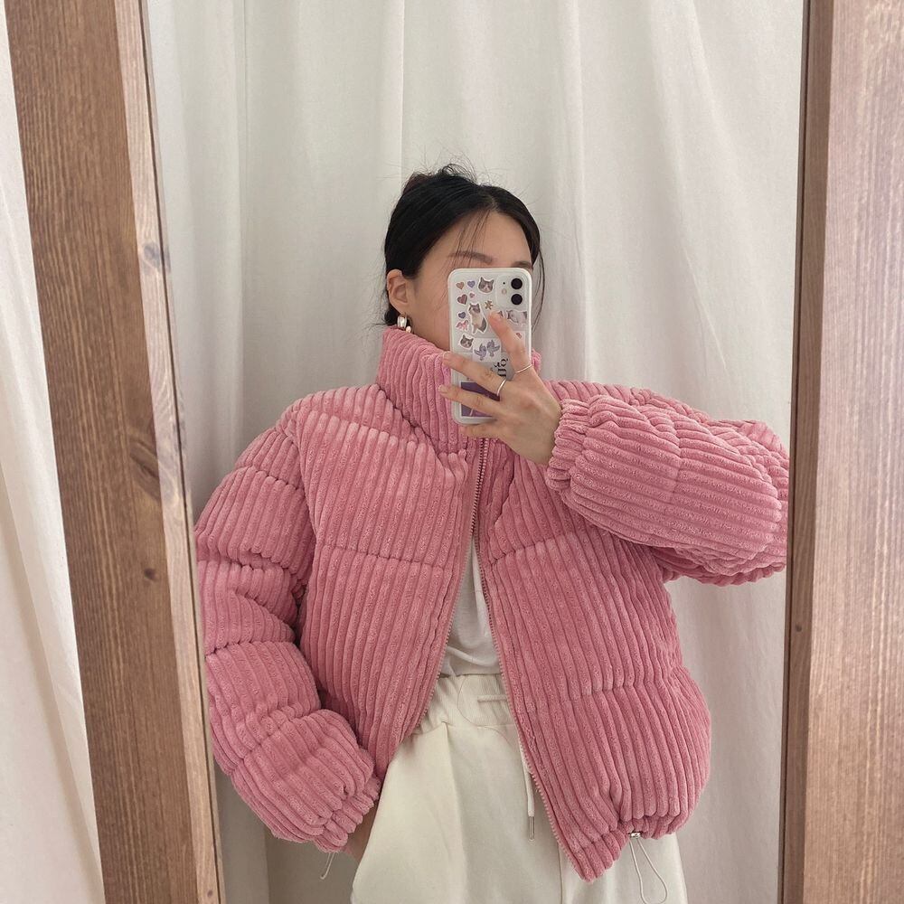 オータムウィンターホワイトカラールーズストライプコーデュロイジャケット ショートコート レディース ピンク コットン 秋物 冬物 韓国婦人51033513471